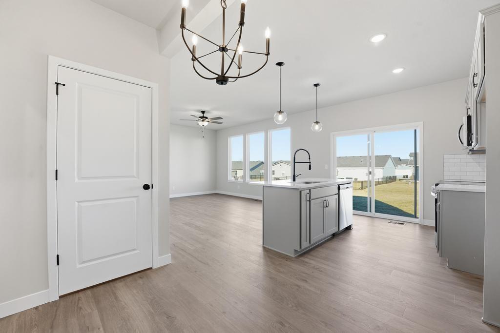 Move In Ready! Welcome to The Kaya by Ashlar Homes! This stunning two-story home offers 3 bedrooms, 2.5 baths, and a versatile loft space. The open-concept kitchen features a spacious island, quartz countertops, stylish tile backsplash, and flows seamlessly into the dining and living areas with beautiful LVP flooring throughout. The expansive primary suite boasts a luxurious en-suite bath with a double vanity, shower, and walk-in closet. Convenient bedroom-level laundry adds ease to your daily routine. Located in a vibrant amenity-rich community, residents enjoy access to a pool, playground, firepit, and upcoming pickleball & basketball courts plus frisbee golf!