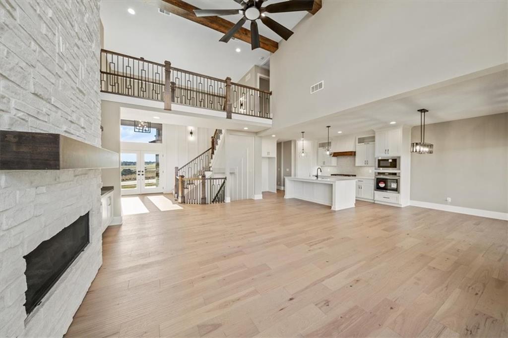 The "Layla" Floorplan is here! Located on a beautiful Level Lot backing to trees. This 1.5 Story plan is everything you have been looking for! As you enter through the gorgeous double doors to the grand entry next to the stunning staircase, you have an ample amount of natural light gracing your Great Room with fireplance, Dining Room and Kitchen. Access to the covered patio is off the Dining Room. The Master En-Suite is behind the Great Room with a wet room shower with stand alone tub for the serene spa experience, double vanity, next to walk-in closet and connected to Laundry Room. The opposite side of the main level is Bedroom #2 with its own bathroom with a tiled shower. Up the stairs is a catwalk connecting 2 bedrooms and a bathroom with double vanites and walk-in closets to the other side with bedroom #5 with its own bathroom, shower over tub and walk-in closet. Option to finish the basement. All in the coveted Heritage Ranch, A Lambie-Rieke Community, with Amenities Galore such as state-of-the-art pool, clubhouse, trails, pickleball. play area, half-court basketball, Putting Green & ponds and so much more coming soon! This community provides a wonderful lifestyle and right next to the 1,238 Acre Heritage Park with Dog Park, Sports Parks, Golf, Lake, Trails and so much more! Contact Onsite Agents for Estimated Completion of homes on site, and design selections. Our Welcome Center Office is now open, located at LOT 65. Open 7 days a week! Renderings &/or images may show features and sq ft that are subject to change. SPEC HOME IS UNDER CONSTRUCTION on LOT 107. With an Estimated Completion of MARCH 2026. Welcome Home to Heritage Ranch - one of the last NEW Home Communities in Johnson County!