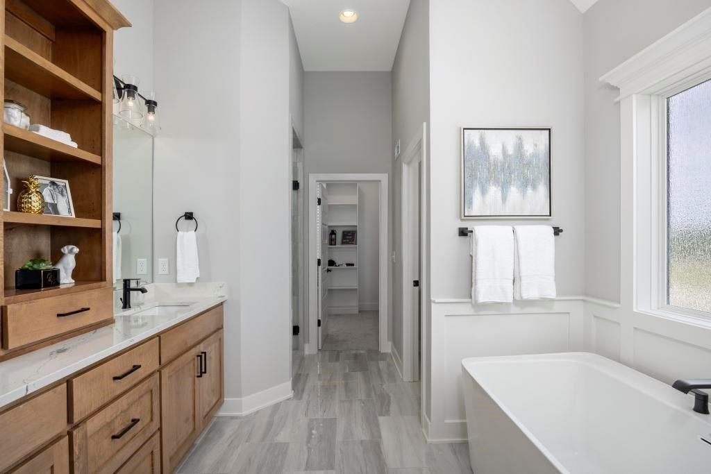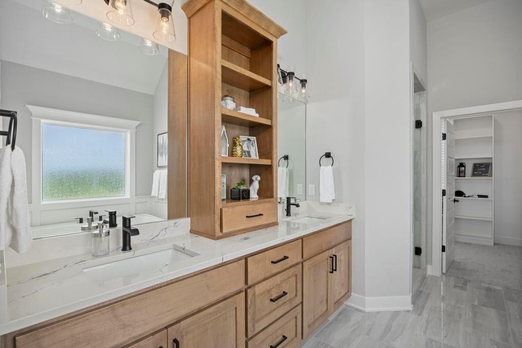 Ready in 30 Days! New Mark Homes’ Timberland EXP 1.5-Story Plan – Now Available. Situated on a quiet cul-de-sac on Lot 501, this thoughtfully designed five-bedroom, 1.5-story home offers exceptional functionality and quality finishes throughout. Two bedrooms are conveniently located on the main level, including a private secondary bedroom tucked off a separate hallway, making it ideal for a guest suite or home office. The Great Room features a vaulted ceiling open to the second-floor balcony, creating an open and airy atmosphere. The kitchen is designed for both everyday living and entertaining and includes a gas cooktop, expanded island, super single sink, oversized walk-in pantry, and designer finishes. The main-level primary suite is privately situated in its own wing and features detailed trim work, a freestanding tub, glass-enclosed shower, and a large walk-in closet with direct access to the laundry room. The upper level offers three additional bedrooms, all with walk-in closets, including one Jack and Jill bathroom and one ensuite bath. Additional features include a covered raised rear patio, custom accent wall at the stair landing, upgraded engineered hardwood flooring, and a stone fireplace with mantel and shiplap surround. The home is currently at the finishing stage as of 2/26/26 and is on a completion schedule with an estimated completion of March 2026. Chapel Hill features first class amenities to include 2 swimming pools (one competition sized), Clubroom/Clubhouse, pickleball court, tot lot and walking trails thru the nearly 70 acres of natural platted open space through the community. Immediately adjacent is the 1200+ acre Heritage Park Complex featuring 18 hole golf course, recreational lake with marina & sand beach, 30 acre off leash dog park, athlete fields, picnic shelters, walking/bike trails & More!