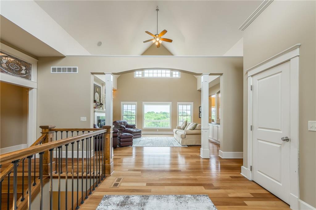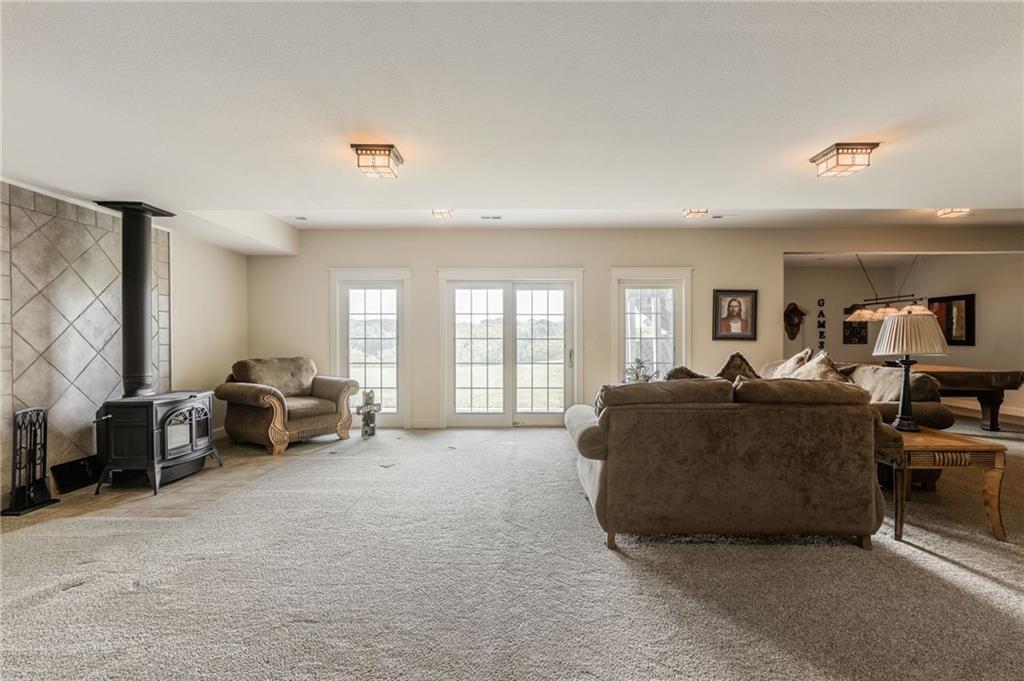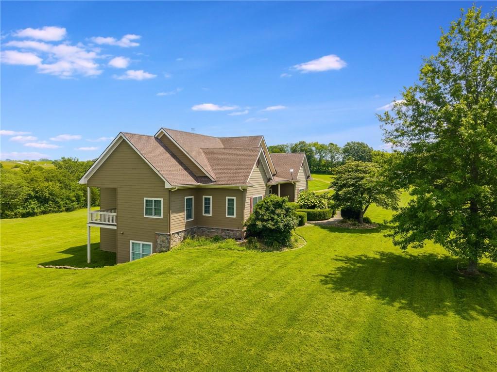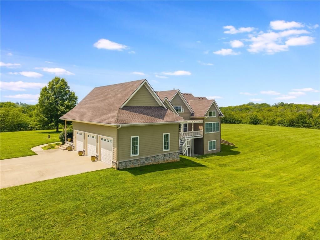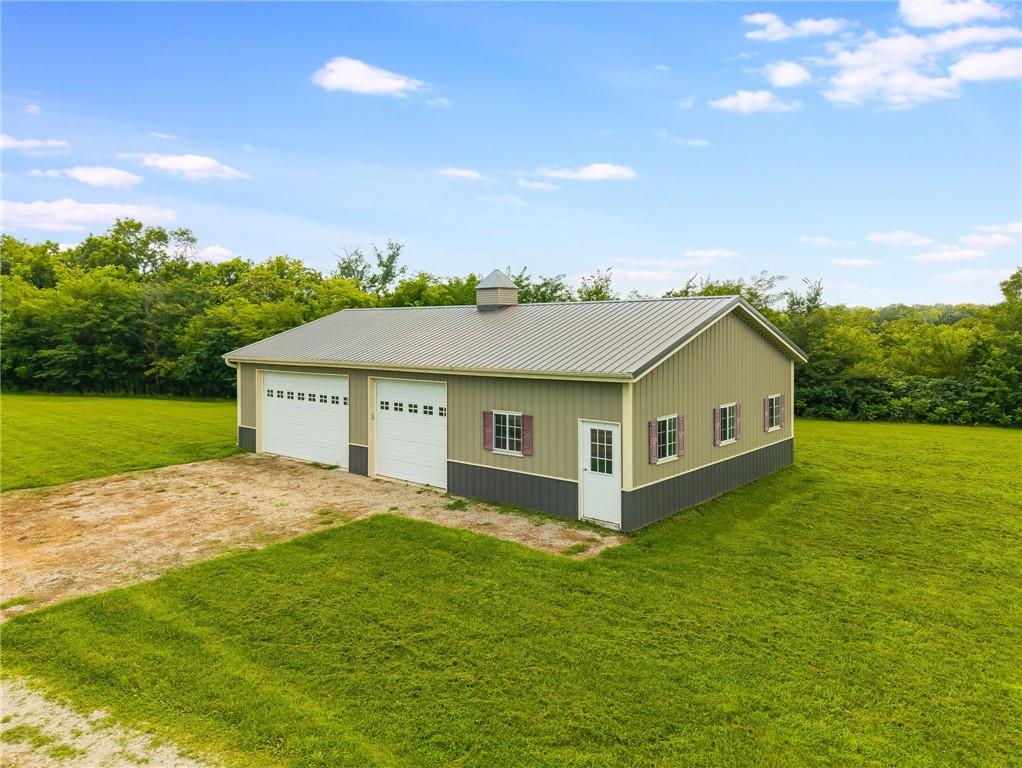 Discover the ultimate blend of privacy, luxury, and functionality with this breathtaking custom-built estate on nearly 27 acres in Kingston, Missouri—just a 30-minute drive from Kearney. Designed with family in mind, this one-of-a-kind property offers high-end finishes, thoughtful details, and a sense of serenity that’s hard to find. Spacious country kitchen featuring two large islands, granite countertops, and handmade cabinetry that offer both beauty and function. An industrial-grade refrigerator anchors the space, while the built-in Bose surround sound system. A reverse osmosis system provides pure, fresh drinking water. The main living area is bright and welcoming, filled with natural light and elevated by 10-foot ceilings, vaulted architecture, and distinctive stained glass accents that add both character and charm. The luxurious primary suite, featuring a spa-like bathroom with heated tile floors—a cozy touch for chilly Missouri mornings. Just off the main living space, a dedicated library room and separate office offer quiet, functional areas with main-floor convenience. Two expansive decks with unobstructed views that shift beautifully with the seasons. The fully finished walk-out basement extends your living space with a kitchenette—complete with refrigerator and microwave—ideal for guests, entertaining, or multigenerational living. Every bedroom in the home features walk-in closets, well-organized storage throughout. A dedicated theatre/media room provides an immersive cinematic experience, while a built-in safe room adds peace of mind. Outside, you’ll find a well-equipped outbuilding with a three-car garage. Built with quality craftsmanship at every turn, this home features countless upgrades, including 2x6 construction, Hunter Douglas windows, a UV light filtration system, two 50-gallon water heaters, a whole-house generator, a water softener, and reliable Starlink internet to keep you connected even in this peaceful, rural setting.