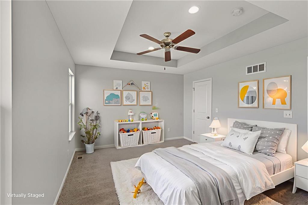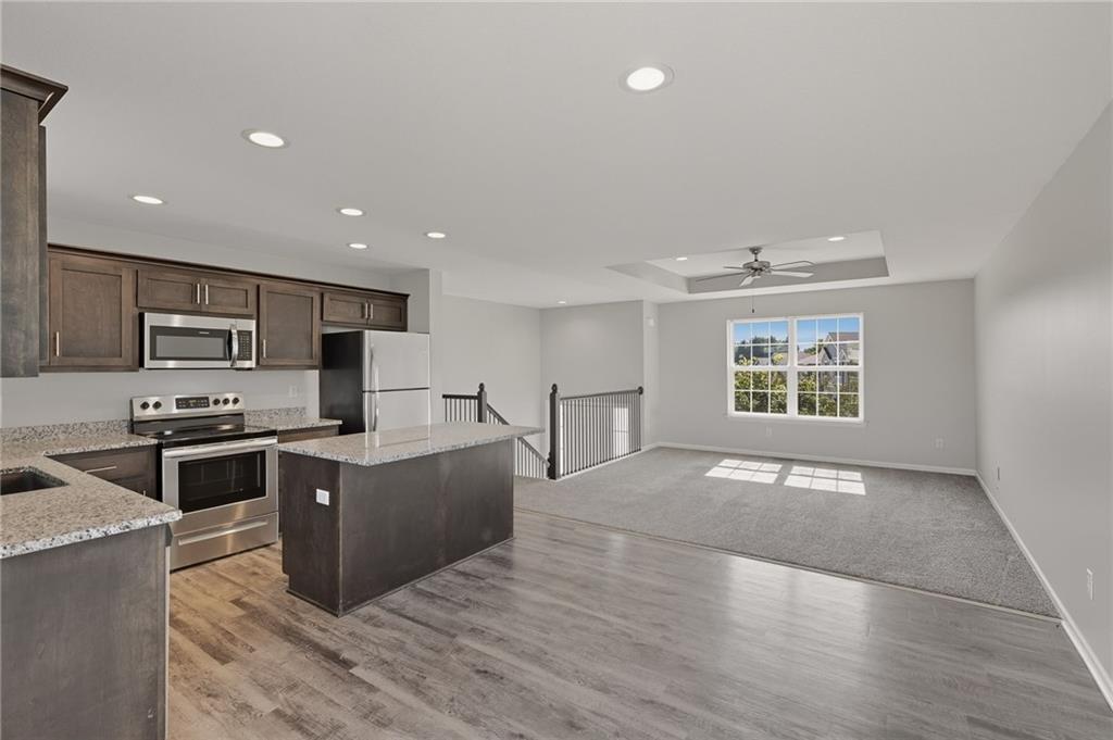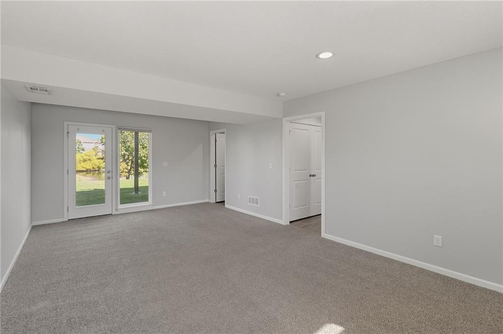 Enjoy comfort and style in this inviting 1-story home with a full finished basement and 2-car garage. The open floor plan features a spacious kitchen with a large island, stainless steel appliances, and accent lighting that adds a modern touch. The primary suite offers a double vanity and generous closet space. Step out onto the wood deck and take in peaceful views of the pond, grassy area, and surrounding neighborhood. A perfect blend of indoor and outdoor living—schedule a showing today!