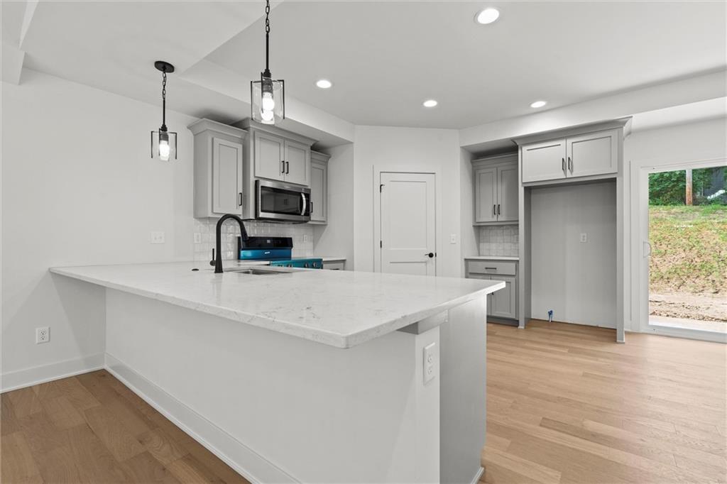 New construction 2025 home • Modern finishes • 0.3 mi to US-24 & Sterling Ave • Near Independence Square Open-concept design with 3 bedrooms and 2 full baths on the main level. Stylish kitchen features new stainless appliances, quartz-style counters, and modern cabinetry adjoining a bright dining area with patio access. Full basement with garage entry is stubbed for a 3rd bath and 4th bedroom, ready for future finish. Energy-efficient systems and new roof for low-maintenance living. Spacious lot near shopping, dining, parks, and the Hwy 24 corridor for easy access to Independence Square and Kansas City.