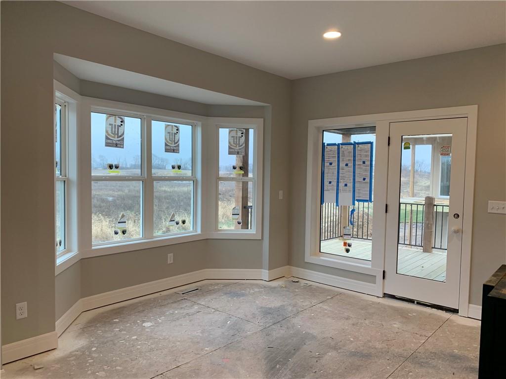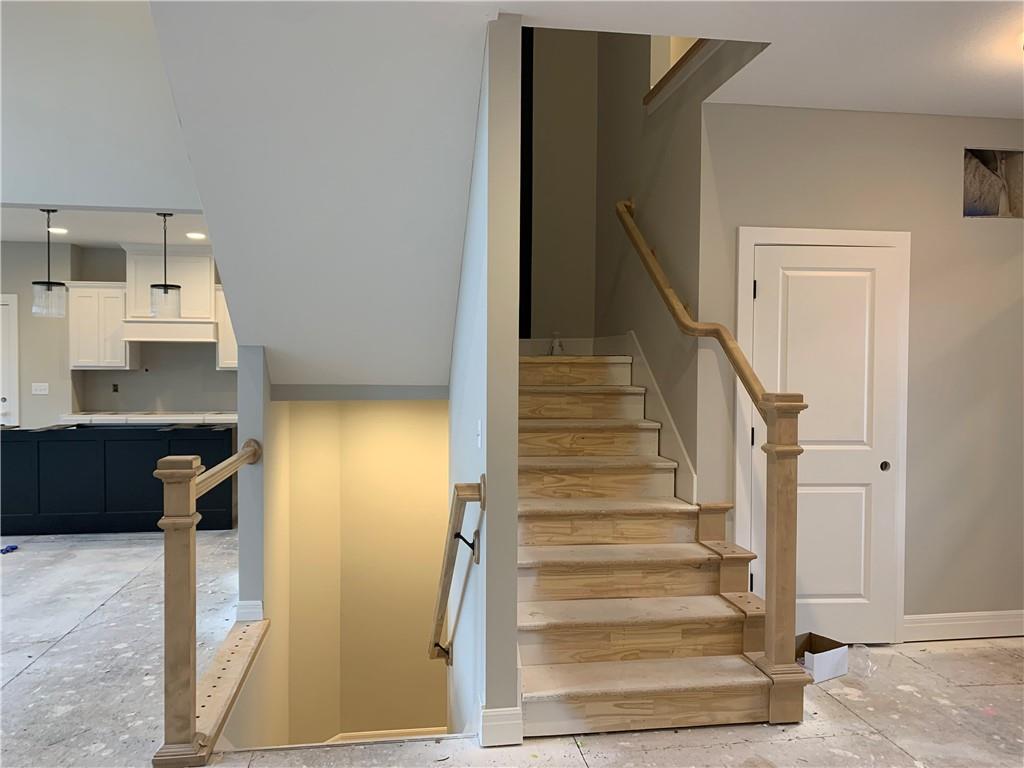 The Brooklyn by New Mark Homes is a 1.5-story walkout residence located in Cadence—a thoughtfully designed, master-planned community by Hunt Midwest. With an estimated completion of January 2026, this 4-bedroom, 3.5-bathroom home offers over 2,800 square feet of elevated living, blending intentional design with everyday functionality. From the moment you arrive, the dimensional front elevation makes a striking impression. Inside, you'll find a spacious, open-concept layout featuring custom-built cabinetry, quartz countertops, a walk-in pantry, and an oversized island—ideal for daily routines and effortless entertaining. The kitchen flows seamlessly into the great room, where a floor-to-ceiling tiled fireplace serves as a stunning focal point. A walkout deck extends your living space outdoors—perfect for relaxed evenings or weekend gatherings. Upgraded trim and designer-selected finishes throughout the home add depth, detail, and polish to every space. The main-level primary suite offers a quiet retreat with a spa-inspired bathroom, freestanding soaker tub, and dual vanities. There's an office on the main floor for added convenience. Upstairs, a loft anchors three additional bedrooms—each with bath access—offering privacy and versatility for family or guests. Cadence residents enjoy access to a range of neighborhood amenities, including a community pool, winding walking trails, and nearby Platte Purchase Park. Located in the award-winning North Kansas City School District and within Staley High School boundaries, this home delivers an ideal combination of style, location, and livability. Taxes & square footage are approximate.