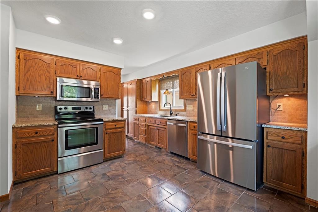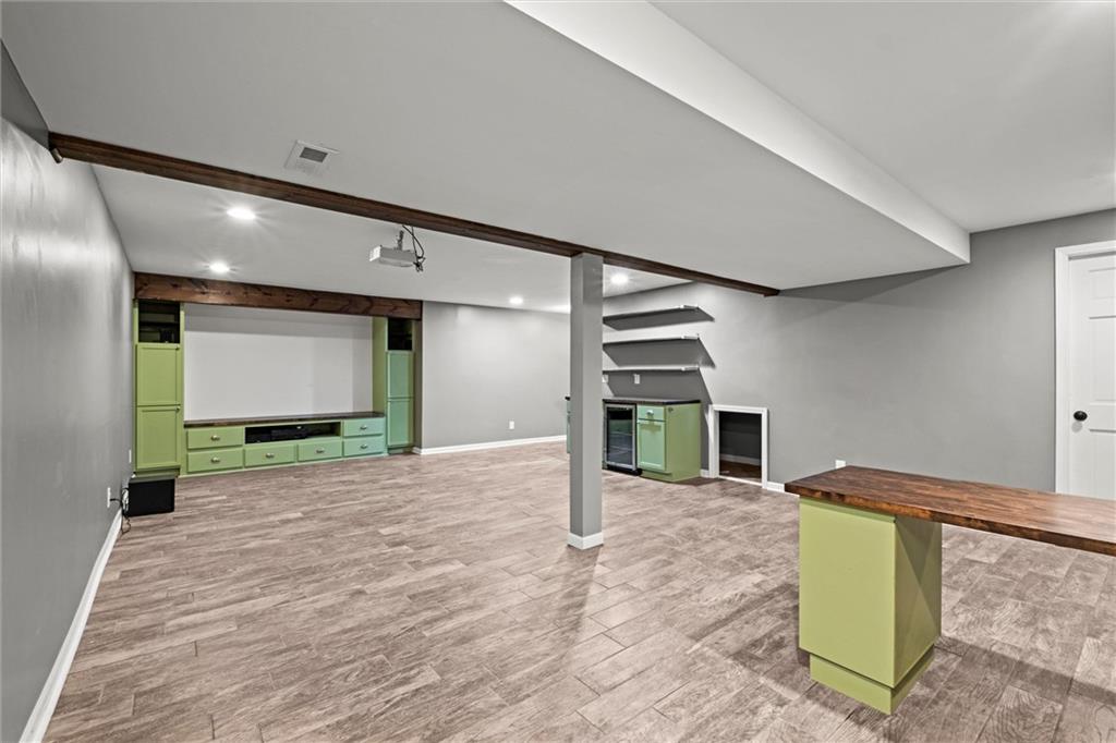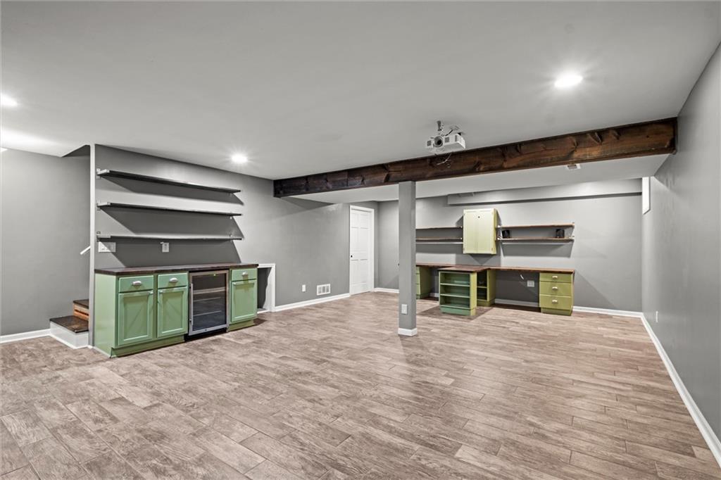 Move-in ready West Lawrence home on a corner lot in a quiet cul-de-sac near the Jayhawk Club, Quail Run, and Clinton Lake; located in the Free State High, Southwest Middle, and Quail Run Elementary school zones. Vaulted ceilings and warm hardwood floors create an open, inviting main living space, while the main-level primary bedroom adds everyday convenience. The fully finished basement features custom built-ins, a home theater setup, abundant storage, and a dedicated workspace ideal for a home office, hobbies, or game-day gatherings. Enjoy a large fenced backyard with fruit trees and established perennial landscaping designed for low-maintenance outdoor living. Major updates include newer windows with lifetime warranty, electrical upgrades, new red oak hardwood floors upstairs, exterior drainage improvements, new privacy fencing, fresh exterior paint, and a 6-year-old roof. Sellers are offering a Gold Service Plan home warranty with AB May for added peace of mind.