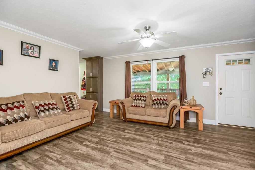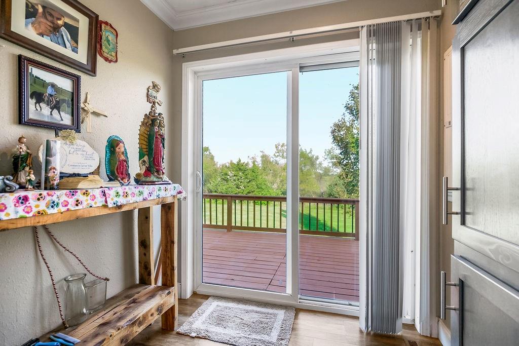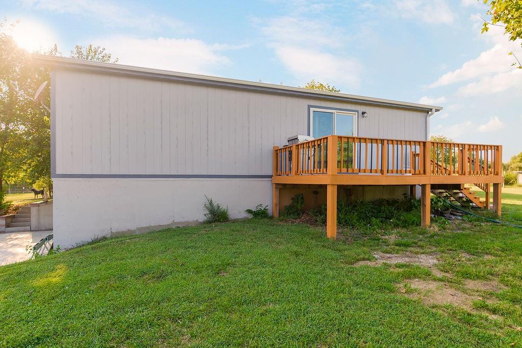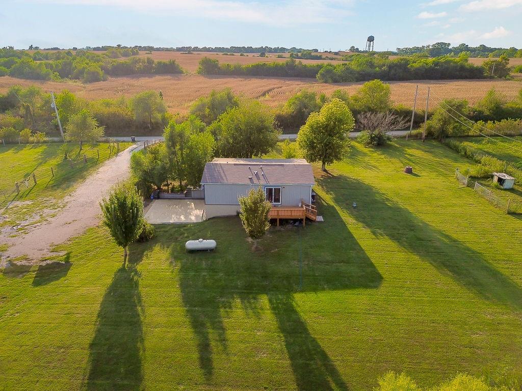 Beautifully remodeled ranch home on approximately 5 fully fenced, level acres. This cozy 3-bedroom, 2-bath home features an open floor plan, a spacious primary suite, and a fourth non-conforming bedroom in the basement. Enjoy peaceful country views from the charming front porch. The property includes functional outbuildings, a barn with stables ideal for horses, and a chicken coop. Quiet, private setting with convenient access to Bonner Springs, Kansas City, Tonganoxie, and Basehor—offering the perfect balance of country living and central location.