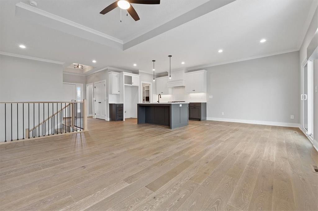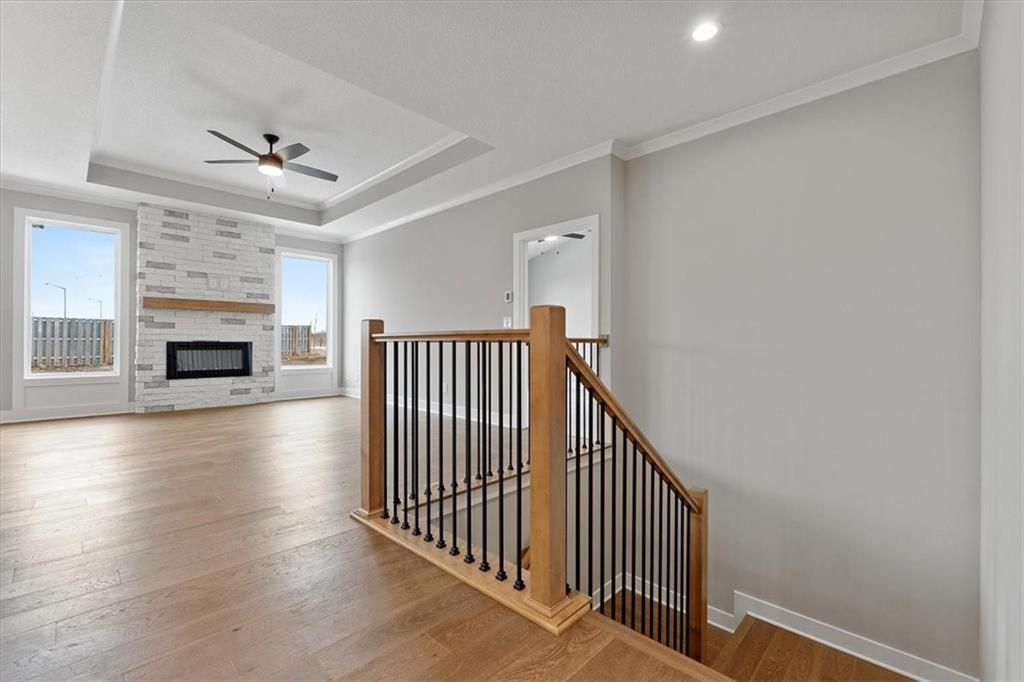 + $15,000 Flex Cash Builder Incentive!* The Newberry by Lambie Homes is a stunning 3-bedroom, 2.5-bath reverse 1.5-story floor plan designed for modern living. Featuring 9’ ceilings on the main level, the open family room showcases a dramatic floor-to-ceiling stone fireplace with a 40" Allusion electric insert and flows seamlessly into the dining area and covered patio/deck which is perfect for entertaining. The main-level primary suite offers a spacious walk-in closet and convenient laundry access. The finished lower level includes a large family room, two additional bedrooms, and a full bathroom - providing plenty of space for family or guests. Located in Mize Hill, Lenexa’s newest maintenance-provided community, residents will enjoy walking trails, future community pool, and close proximity to Cedar Station Park and Mize Lake. Builder Incentives Available – Contract to close on or before 12/31/2025. Photos are of a model Newberry plan and may depict options not included in this home. Colors, finishes, and style may vary. Home is open Wednesday–Sunday, 12:00–5:00 PM.