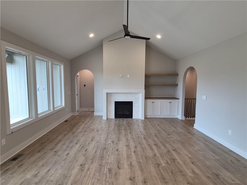 The Lily by Harlow Homes - Lot 69. READY NOW! This new plan combines quality construction and perfect size home for one level living with additional finished space in the lower level. Live in a beautiful GOLF COURSE community!! PHOTOS and VIRTUAL TOUR OF ANOTHER VERY SIMILAR HOME. The vaulted ceiling and arched doorways of the great room give the home extra pizazz. Standard upgrades include quartz in the kitchen and bathrooms, high end LVP flooring, wall oven and gas cooktop. The main floor Primary Bedroom and Bath Suite includes a tub, walk-in shower and a generous primary closet. A second bedroom and bath are also on the main floor. The lower level is finished with a Rec Room, 3rd and 4th Bedrooms and third Bath. Large covered patio to enjoy the outdoors. Just 10 minutes to the Legends shopping and entertainment district and 30 minutes to the airport, Falcon Lakes is conveniently located on K-7 for easy highway access. Acclaimed Basehor-Linwood Schools!