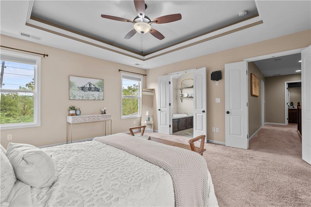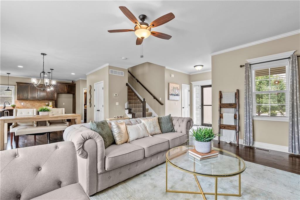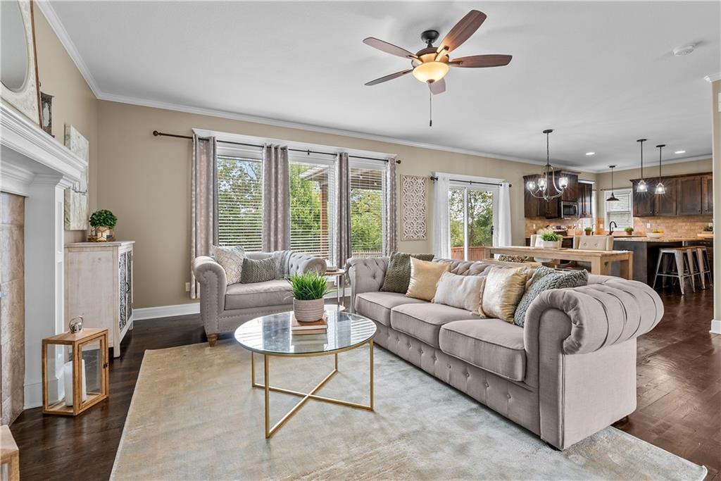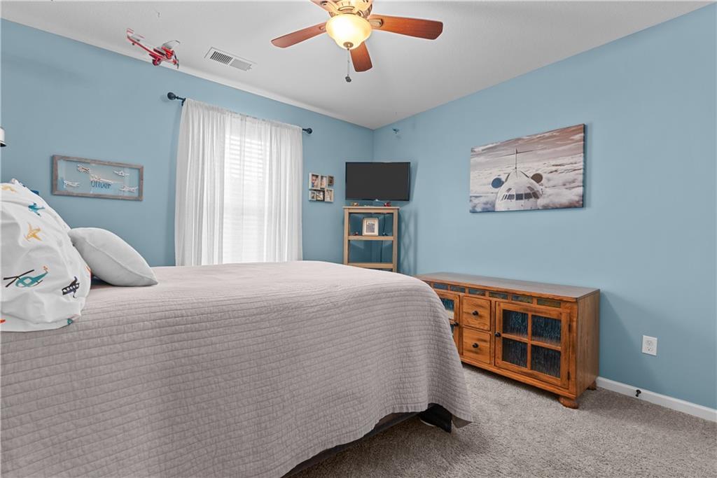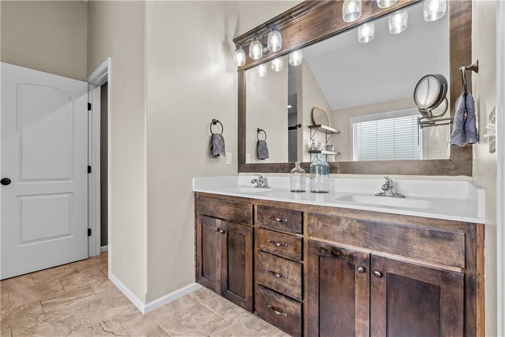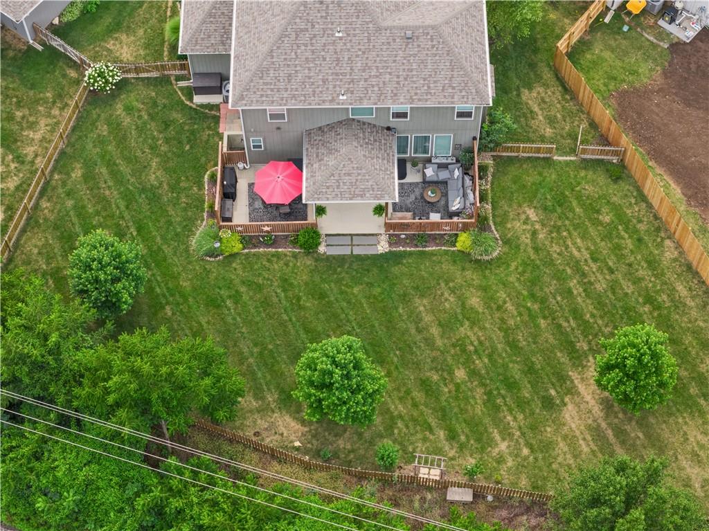Welcome to this beautifully maintained 2-story home in the sought-after Parkway Estates community and award-winning Blue Springs School District! Nestled on a quiet cul-de-sac lot, this home offers 4 bedrooms, 2.5 baths, and over 2,700 sq ft of living space designed for both style and function. Step inside to find an inviting open floor plan with hardwood flooring, crown molding, and a cozy gas fireplace in the living room. The kitchen features granite countertops, a large island, stainless steel appliances, and rich cabinetry—perfect for everyday cooking and entertaining alike. Upstairs, the spacious primary suite offers a tray ceiling, soaking tub, dual vanities, and a walk-in closet with built-in organization. The finished lower level provides additional living space with room for a rec area, playroom, or home gym. It’s also stubbed for a future bathroom and includes multiple storage areas. Outside, enjoy the fully fenced backyard that backs to serene green space with no rear neighbors, along with a covered patio complete with privacy screen and string lighting—an entertainer’s dream! Additional highlights include a 3-car garage, new roof (2024), whole-home humidifier, water softener, and original HVAC and water heater (2016) still in great condition. Neighborhood amenities include a community pool, playground, and sidewalks, providing the perfect blend of convenience and community. This home checks every box—space, location, and lifestyle—all in the heart of Blue Springs.