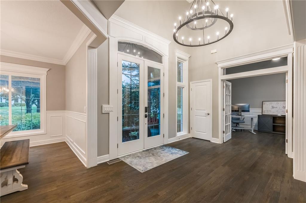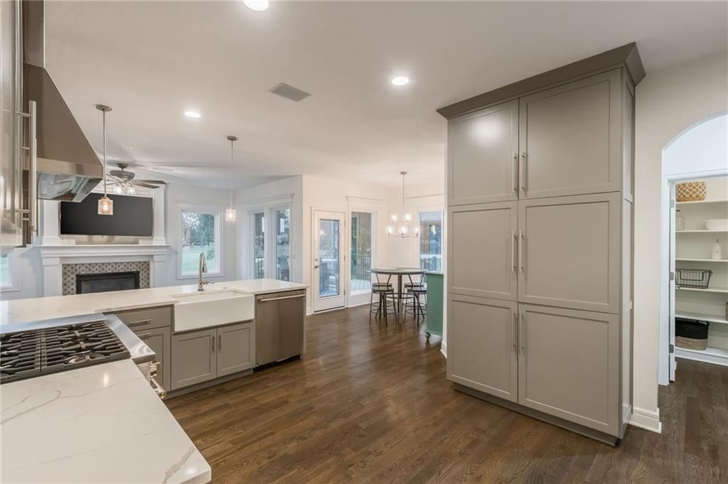 Every single room has been updated throughout the entire house! COMPLETELY REMODELED: kitchen, bathrooms, flooring, lighting, paint, patios. Spectacular views of the golf course from all three levels. Finished walkout basement with full bar, rec room, and media room. Enjoy a stunning chef’s kitchen with custom floor-to-ceiling cabinets, quartz countertops, high-end Monogram appliances, and a 6-burner stove with double ovens. The luxurious primary suite features a spa-like bathroom with an oversized shower, free-standing tub, and designer vanities. All bedrooms and bathrooms have new flooring, fixtures, and modern finishes. The home includes a whole-house LED lighting, Sonos surround sound, four resurfaced fireplaces, high-efficiency Trane HVAC, and brand-new windows and doors with custom tinting. Outdoor living is unmatched with a 1,600 sq ft entertaining space, covered pergola, composite deck, waterproof underdeck lounge, 1,300 sq ft stamped concrete patio, and a huge natural fire pit with seat wall overlooking the 16th hole at Staley Farms Golf Course. Truly move-in ready with every detail thoughtfully upgraded—this is luxury living at its best!