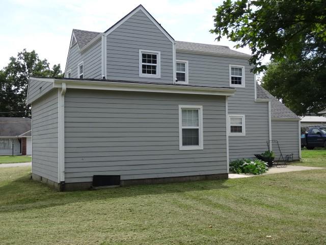 1.5 Story/full basement. Original wood floors on both living levels. Remodeled in 2023 replacing the roof & guttering. The cook in the family will love the remodeled stainless steel kitchen/gas range, dishwasher, trash compactor, French door frig, Pantry. DR has wood floors, crown molding and bead board wainscoting. Living Room is bright & cheery with crown molding & fireplace. NOTE: (Check it out before using it.) Master Bedroom and bath round out the 1st floor living space. Master bath has lg. glass walk-in shower, pocket door into closet. Closet has a 2nd laundry hook up. Arched doorways add charm to the living area. 1/2 bath with LVP flooring on 1st floor. Wide stairs to (3) bedrooms and full bath on the 2nd floor. Ship lap on some of the walls, linen closets. Original wood floors. New windows throughout house. Stairs to the basement where furnace and water heater are located and hook-ups for laundry. Wall of shelving stays with the house. New Concrete board covers the outside of the house. 1 Car Garage with shelving, door out to a concrete patio. 2 trees in the back. 1/2 block for kids to walk to grade school. Close to the park & Aquatic Center. Walking Trails, Senior Center, Pickleball Court, Hospital.
