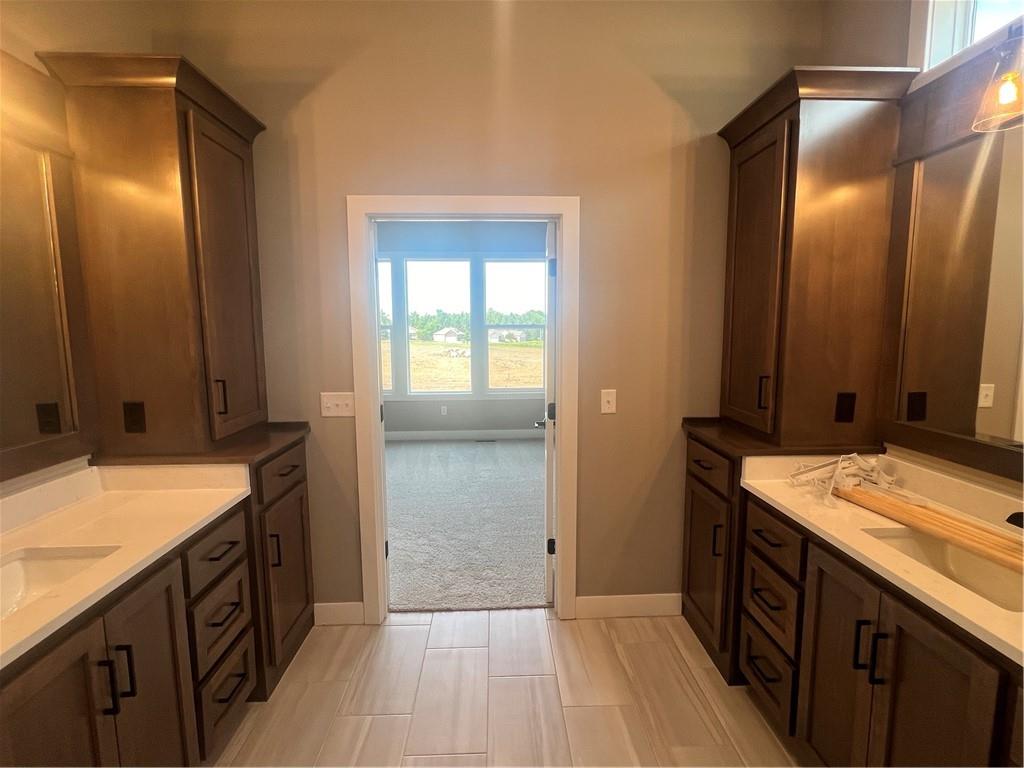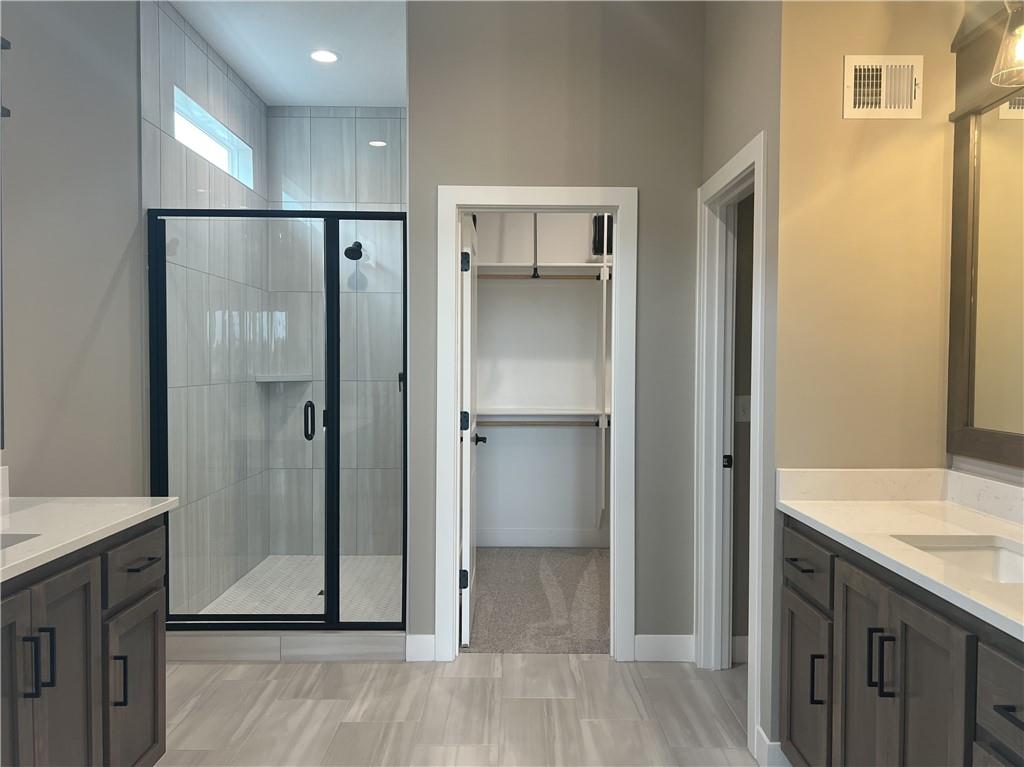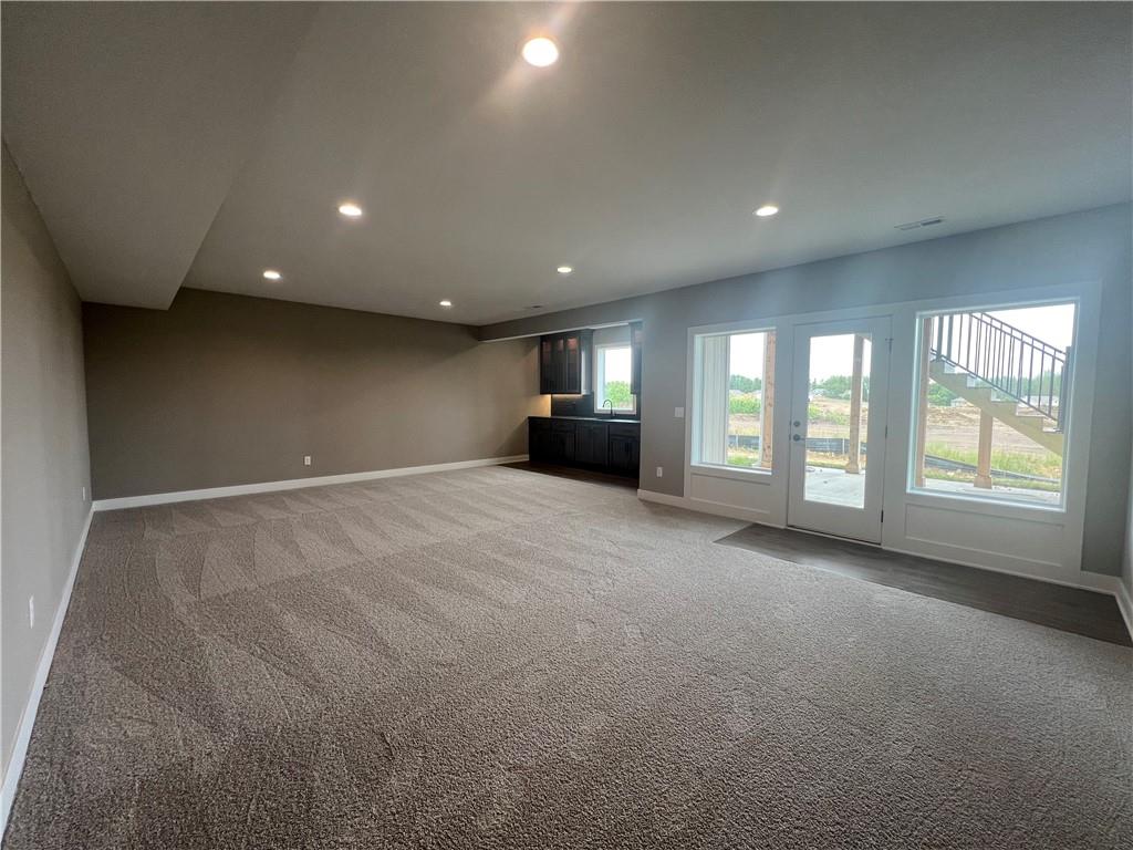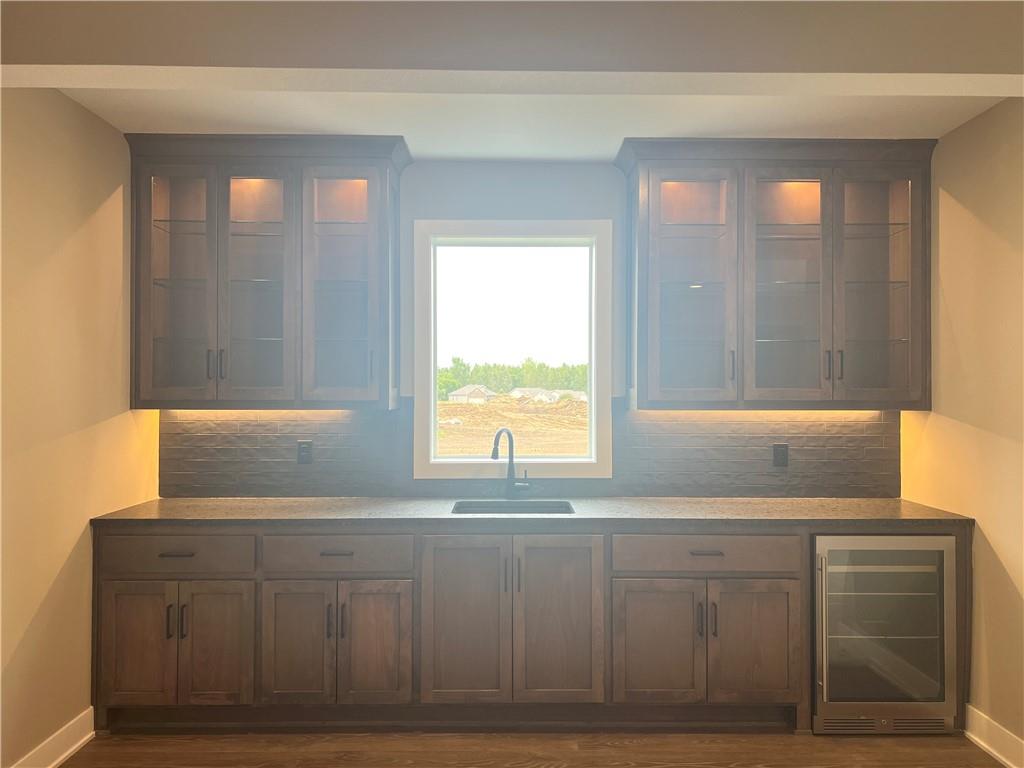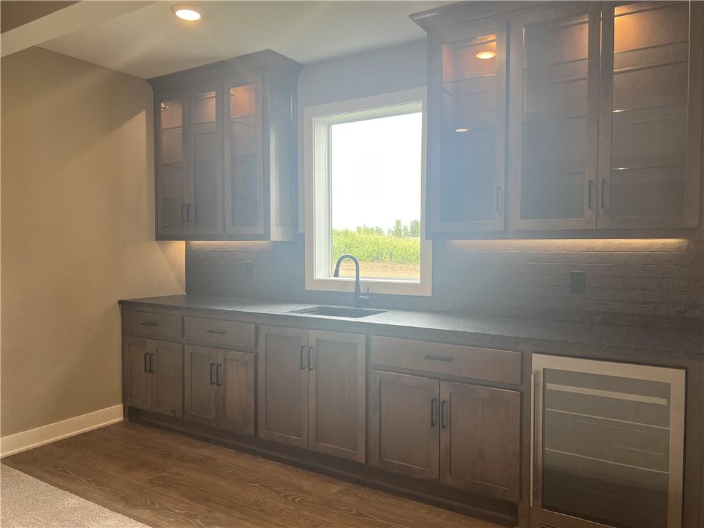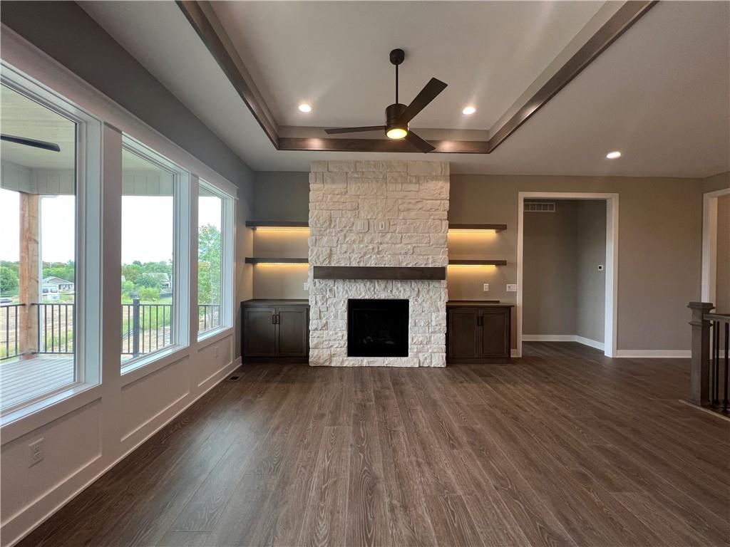 Move-In before the holidays for all of your gatherings and celebrations! Get settled in before the holiday season begins! Don’t miss your chance to own this show-stopping Monterey Reverse 1.5 by award-winning Inspired Homes, located in the sought-after Kensington Farms community in Lee’s Summit, MO! From the moment you walk in, you'll love the soaring 10' ceilings, floor-to-ceiling stone fireplace, floating shelves, and custom built-ins. The designer kitchen is a dream—loaded with quartz countertops, soft-close custom cabinetry, gas cooktop, and built-in SS GE appliances. Oversized windows flood the space with natural light. Think it's a 2-car garage? Think again—it’s a spacious 3-car tandem with plenty of room for storage, tools, or toys! Additional upgrades include a high-efficiency HVAC system, humidifier, irrigation, and garage door openers already installed. The main-level primary suite is pure luxury with a double vanity, huge walk-in tiled shower, and large walk-in closet featuring custom pull-down rods for maximum storage. A second bedroom and full bath round out the main level. Head downstairs to a fully finished basement featuring a massive rec room, custom wet bar, two more bedrooms, and a third full bath—ideal for entertaining or guests! Kensington Farms, located in Cass County, offers a community pool, playground, greenspace, and is just minutes from everything—shopping, dining, golf, lakes, and more!