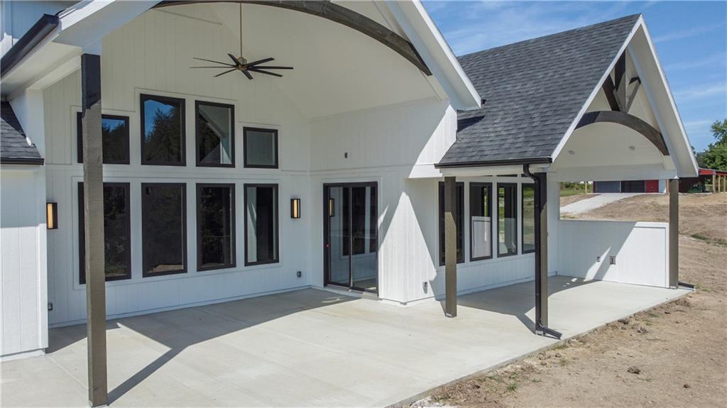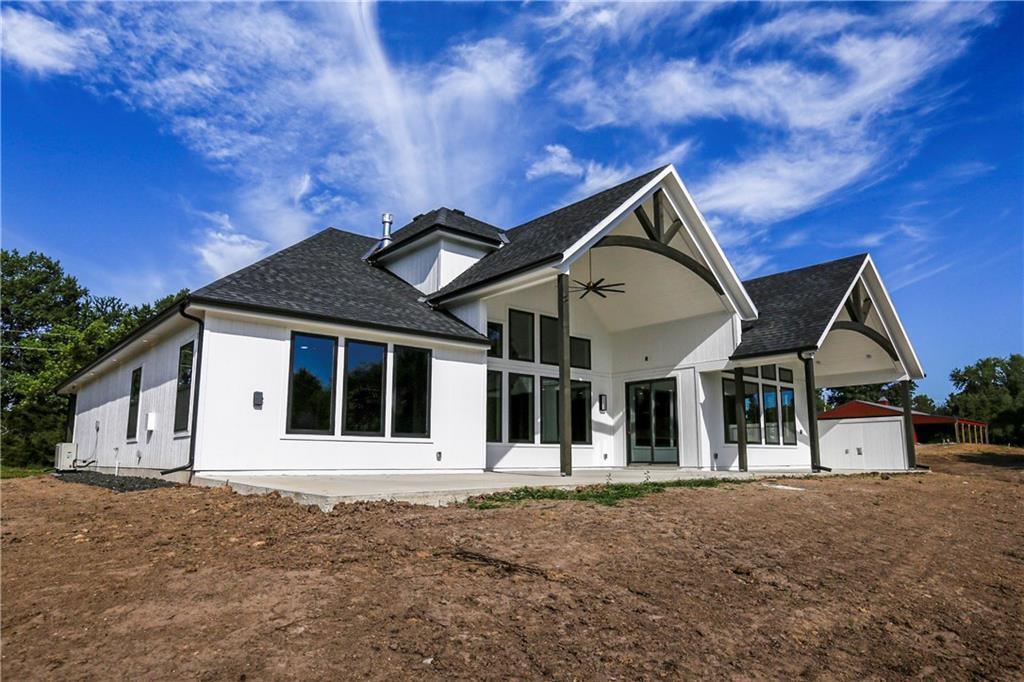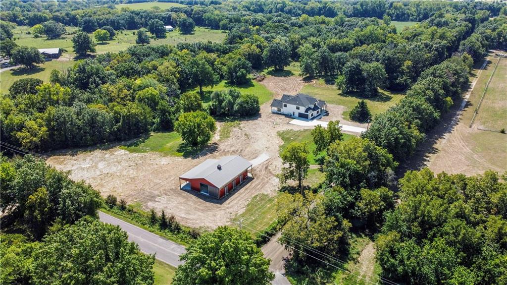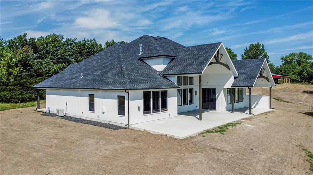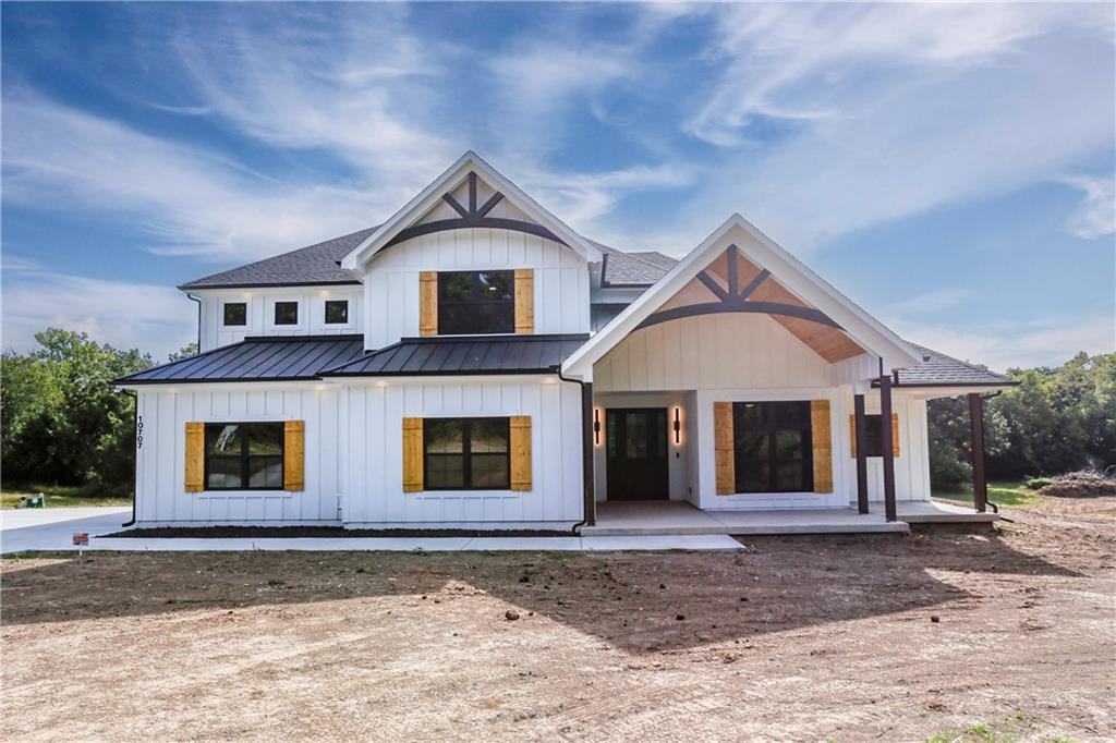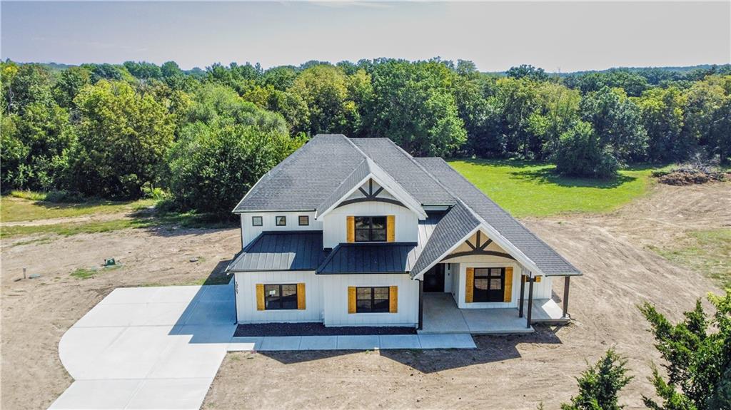 Luxury meets country living in The Westbrook by KC Custom Homes! This 1.5-story custom estate sits on 10+ rolling acres with a meandering creek and 12-ft deep pond. Featuring over 3,400 finished sq ft, the home showcases soaring 18-ft ceilings, a 40-ft wide great room, and a designer kitchen with oversized island, quartz counters, custom cabinetry, accent lighting, and a vaulted dining area. The main-level primary suite offers a spa-like bath with freestanding tub, tiled walk-in shower, and custom walk-in closet, plus a private office and designer half bath. Upstairs, 3 bedrooms each include en-suite baths and walk-in closets. Designer details throughout: exposed wood beams, tall trim, wainscoting, feature walls, curated lighting, and cedar arches with LED up-lighting. Outdoor living includes a cathedral-ceiling front porch, covered patio, and outdoor cooking area with gas/electric hookups. A new 40’x50’ barn offers a concrete floor, full power, two 15’ sliding doors, 3 horse doors, a 15’x50’ lean-to, and 10’ front overhang—perfect for livestock, storage, or workshop needs. Additional highlights: extra-deep garage, spray-foam insulation, sound-insulated walls, soffit lighting, in-wall Yamaha speakers, wired for generator/hot tub/security/future pond power, Tamko Titan shingles, HBW 210 warranty, and a full pet station with wash area, kennel, pet door & Dutch door. A rare opportunity to enjoy luxury living with country serenity just minutes from city conveniences.