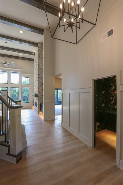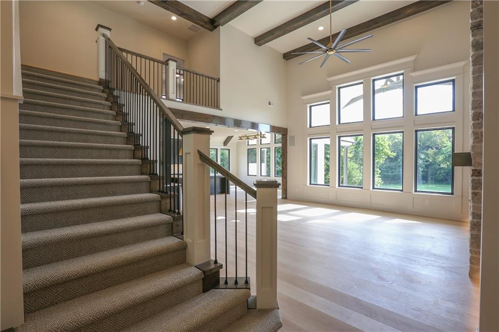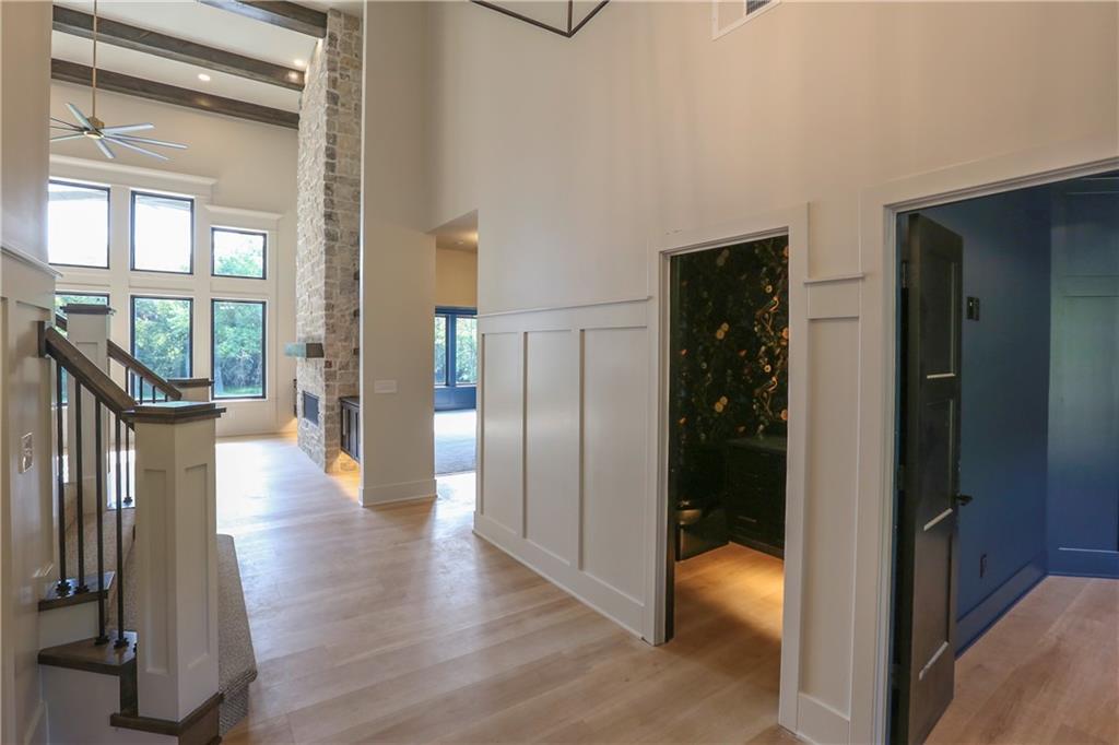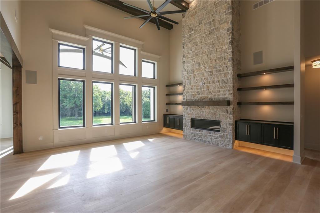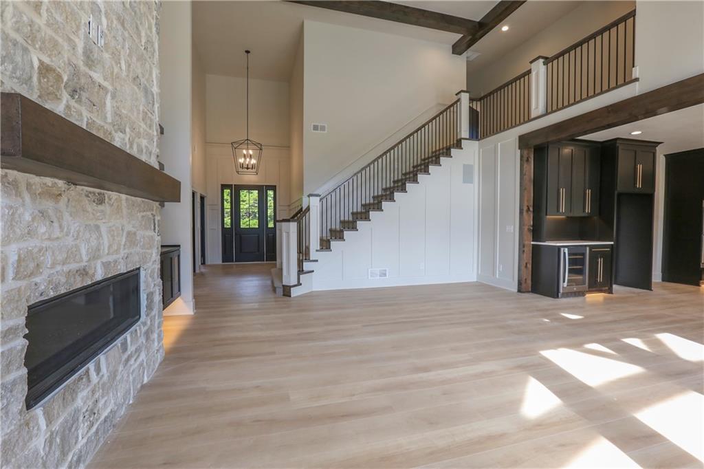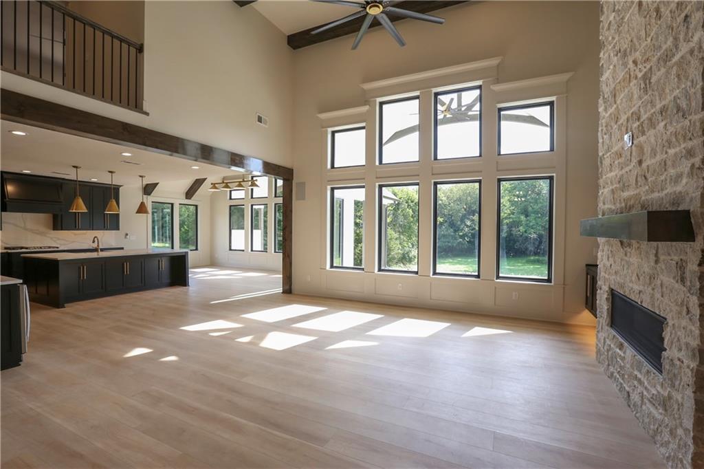 Luxury meets country living in The Westbrook by KC Custom Homes! This 1.5-story custom estate sits on 10+ rolling acres with a meandering creek and 12-ft deep pond. Featuring over 3,400 finished sq ft, the home showcases soaring 18-ft ceilings, a 40-ft wide great room, and a designer kitchen with oversized island, quartz counters, custom cabinetry, accent lighting, and a vaulted dining area. The main-level primary suite offers a spa-like bath with freestanding tub, tiled walk-in shower, and custom walk-in closet, plus a private office and designer half bath. Upstairs, 3 bedrooms each include en-suite baths and walk-in closets. Designer details throughout: exposed wood beams, tall trim, wainscoting, feature walls, curated lighting, and cedar arches with LED up-lighting. Outdoor living includes a cathedral-ceiling front porch, covered patio, and outdoor cooking area with gas/electric hookups. A new 40’x50’ barn offers a concrete floor, full power, two 15’ sliding doors, 3 horse doors, a 15’x50’ lean-to, and 10’ front overhang—perfect for livestock, storage, or workshop needs. Additional highlights: extra-deep garage, spray-foam insulation, sound-insulated walls, soffit lighting, in-wall Yamaha speakers, wired for generator/hot tub/security/future pond power, Tamko Titan shingles, HBW 210 warranty, and a full pet station with wash area, kennel, pet door & Dutch door. A rare opportunity to enjoy luxury living with country serenity just minutes from city conveniences.