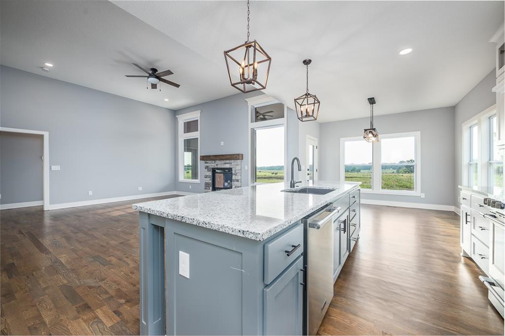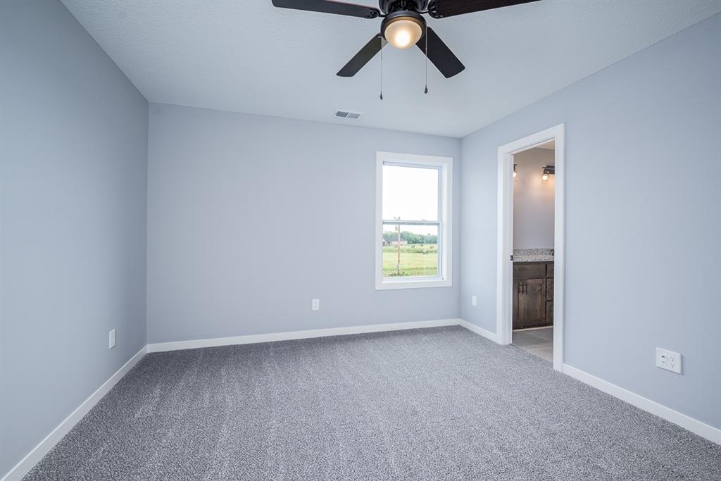 YOUR GRAND ESTATE AWAITS ON ALMOST 2.88 ACRES OF PURE LUXURY! This magnificent home is a symphony of elegance and comfort, designed to surpass your every expectation. Boasting 4+ bedrooms and 3.5 baths, this splendid home has been adorned with exceptional features and finishes. As you step inside, the gleaming hardwood floors on the main level draw you into the heart of this beautiful residence. All the bedrooms in this home are generously equipped with walk-in closets, offering ample storage space for your convenience. The main floor office/den is a versatile space that could easily transform into a fifth bedroom, demonstrating the adaptability of this home. The kitchen is a gourmet's delight, showcasing granite counters, a large island, and a HUGE walk-in pantry. This is where culinary aspirations take flight. The master suite is both grand and serene, offering plenty of space to unwind. It even provides access to a covered deck, the ideal spot for morning coffee or evening relaxation. The master bath is a marvel, featuring a large walk-in shower that's designed for two, making every day feel like a spa day. To top it off, the house includes a storm shelter under the covered front porch for your peace of mind. This incredible property is conveniently located just outside the city limits, accessible via paved roads. This grand estate home is a unique opportunity to experience a lifestyle that's nothing short of exceptional. Don't miss your chance to make this property your own! Pictures are similar to what home will look like finished. Taxes and room sizes estimated.