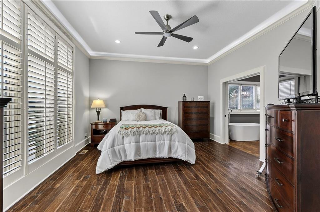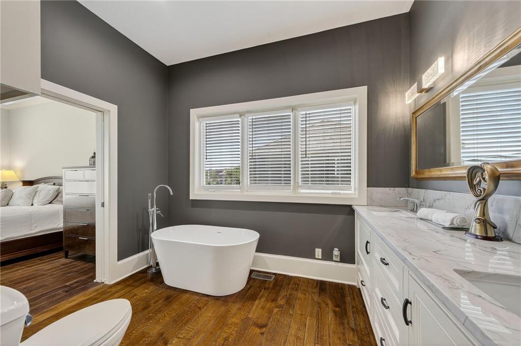 Limited offering in Tiffany Greens Golf Course Community! Come tour Don Julian's rare and highly sought-after golf course lot Westwood Ranch/Reverse 1.5 story plan where unique design meets unequaled craftsmanship. This updated well-maintained home offers the convenience of main-level living with 2 spacious Owner's Suites on the main floor with large walk-in closets, the main owner suite also has a double-sided fireplace. Note the impressive wood trim & stunning vaulted ceilings that set an open inviting atmosphere. This home has wood floors, engineered wood floors and tiled flooring, no carpet for easy maintenance and cleaning. The chef’s kitchen is a true centerpiece, featuring upgraded cabinetry, stainless appliances, a 5 burner gas cooktop, center granite island and beautiful granite countertops. Sip on coffee on the east facing covered deck enjoying the views of the Tiffany Golf Course Greens. Follow the beautiful stairwell to the expansive lower level walkout that is an entertainer’s dream, boasting a full wet bar, generous living space, 3rd and 4th bedrooms, each with their own private full bathrooms. The terrace level also has a pool table and game room area, a sitting room & office nook. Outside, unwind on your private patio oasis with an additional sitting area surrounded by lush landscapes. Special features include a durable tile roof, plantation shutters, front porch & so much more. Don’t miss this opportunity to own a beautifully upgraded home that offers both luxury and comfort! There is a laundry area on the main and lower level floors. Owner is a non-smoker and has no pets. Seller has replaced zoned HVAC system to high efficiency units. Tiffany Greens has a stunning community center with a 25 meter swimming pool and a separate children's pool, exercise area and dressing rooms.