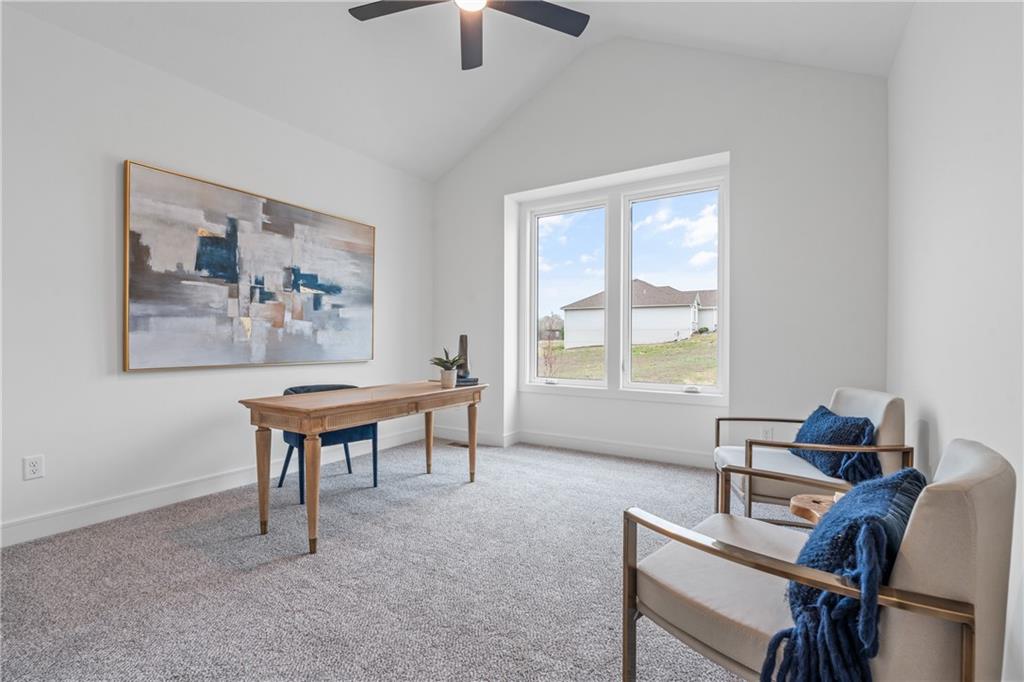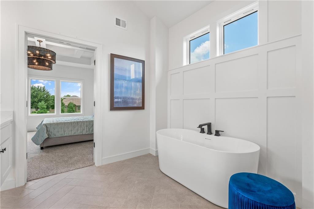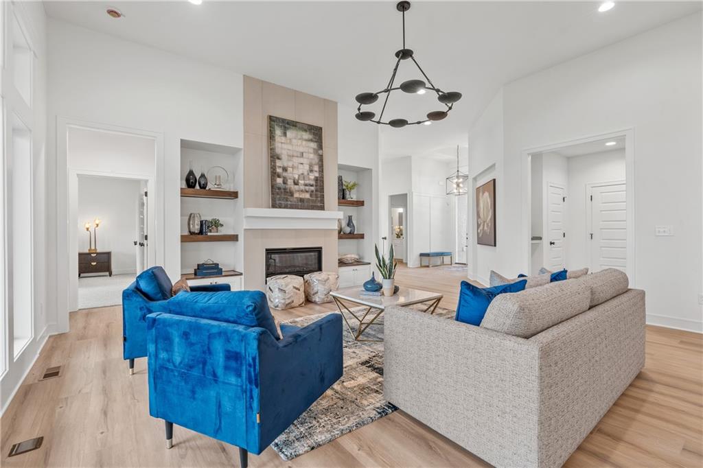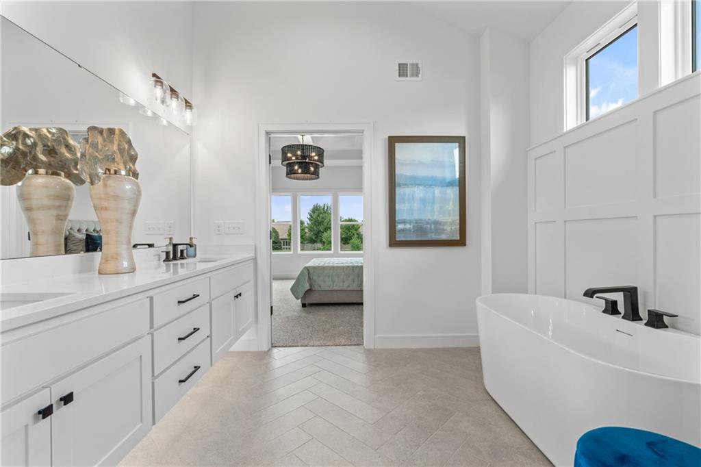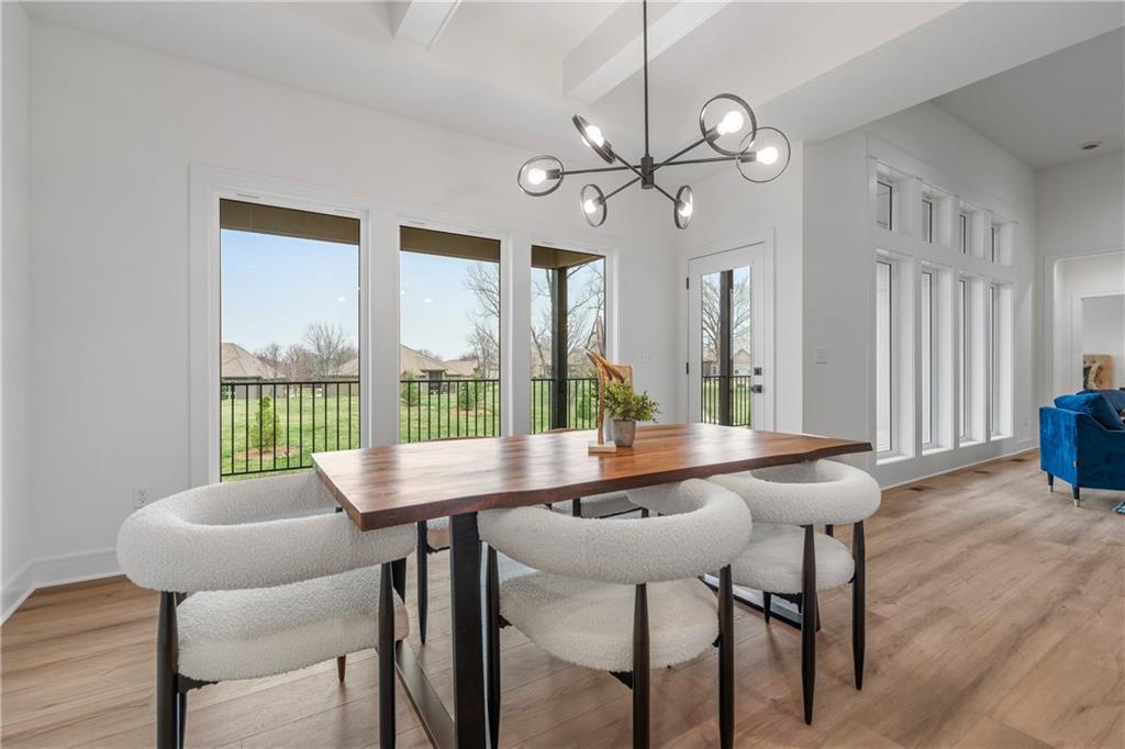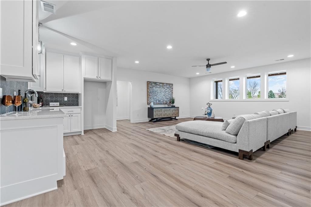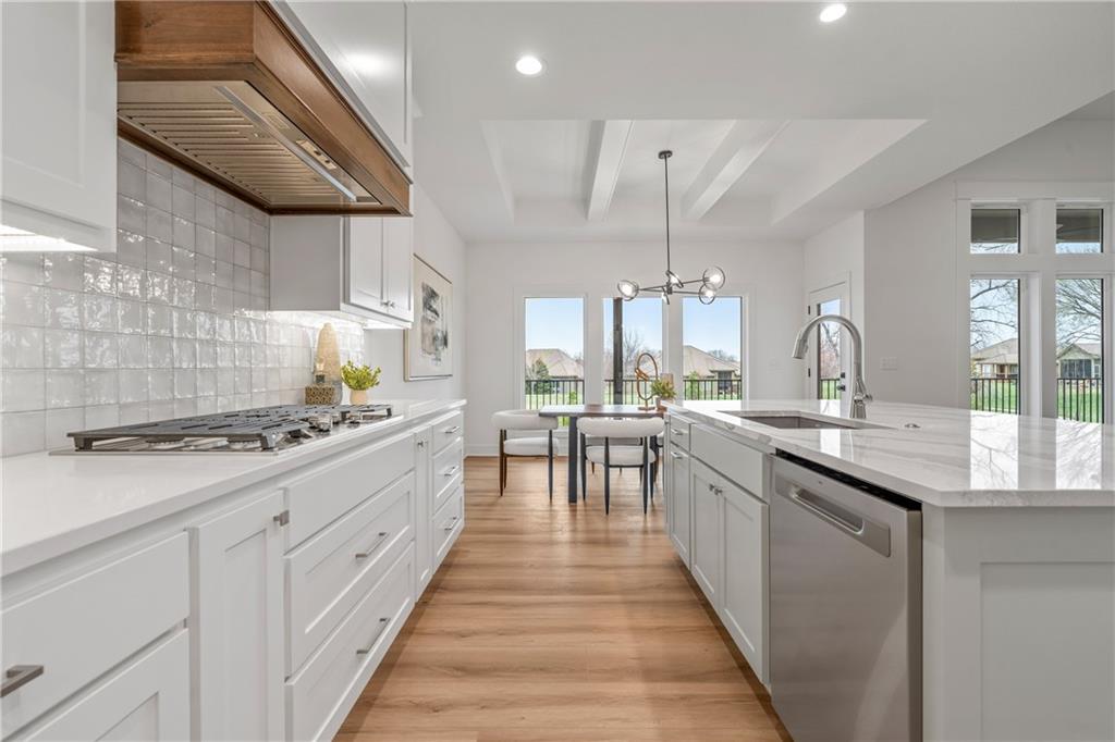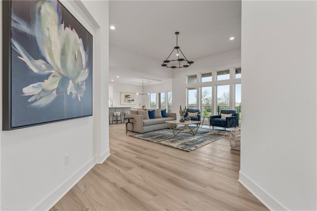 Welcome to your dream home sprawling 3bd 3.5 bth masterpiece offering 3109 square feet of meticulously designed living space. Step through the grand 8’ tall entry dr w/ elegant 18” sidelights into a home that immediately impresses w/ high-end finishes & thoughtful design 12’ Great Room features upgraded linear fireplace w/ blower & remote creating the perfect ambiance for relaxation or entertaining. Upgraded light fixtures illuminate the space while wide-plank luxury vinyl floors flow seamlessly through the entry kitchen, butler’s pantry, dining area, hallways, & great room. Indirect lighting in the kitchen & primary vanities adds a soft, ambient glow, while custom enameled wainscoting & design elements enhance the home's upscale feel.Gourmet kitchen w/ custom enameled cabinets, large pan drawers, soft close cabinets & oversized Cambria island complete w/ pull-out trash & additional storage. Butler's pantry w/ custom shelving & sink, provides a perfect prep area. High-end GE stainless steel appliances: 36” gas cooktop, Zephyr direct vent hood insert, oven w built-in microwave & tall tub dishwasher bring style & performance to your cooking space. Primary bd features a box-vaulted ceiling w/ custom design & spacious layout. Primary bth has herringbone-tiled floors, walk-in shower w/custom cut frameless shower Dr., free-standing soaking tub w/ custom wall panels & vaulted ceilings to create an open, airy atmosphere. Large custom walk-in closet offers ample space & organization for your wardrobe, while soft-close cabinet doors add an extra touch of luxury. Enjoy the privacy of BACKING TO GREENSPACE. Every detail has been carefully considered: 5-inch base trim, wide casing on doorframes & windows, U-shaped staircase w/ black iron spindles & custom maple rail w/stained endcaps, walk-in closets for all bds, all bathrooms feature tiled walls & floors, expansive lower-level storage, Oversized 3-car garage w/tall ceilings & no beam posts. Prime location backing to green space