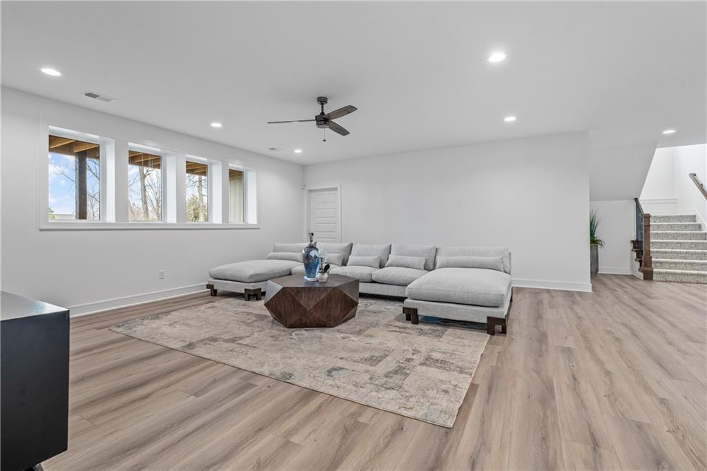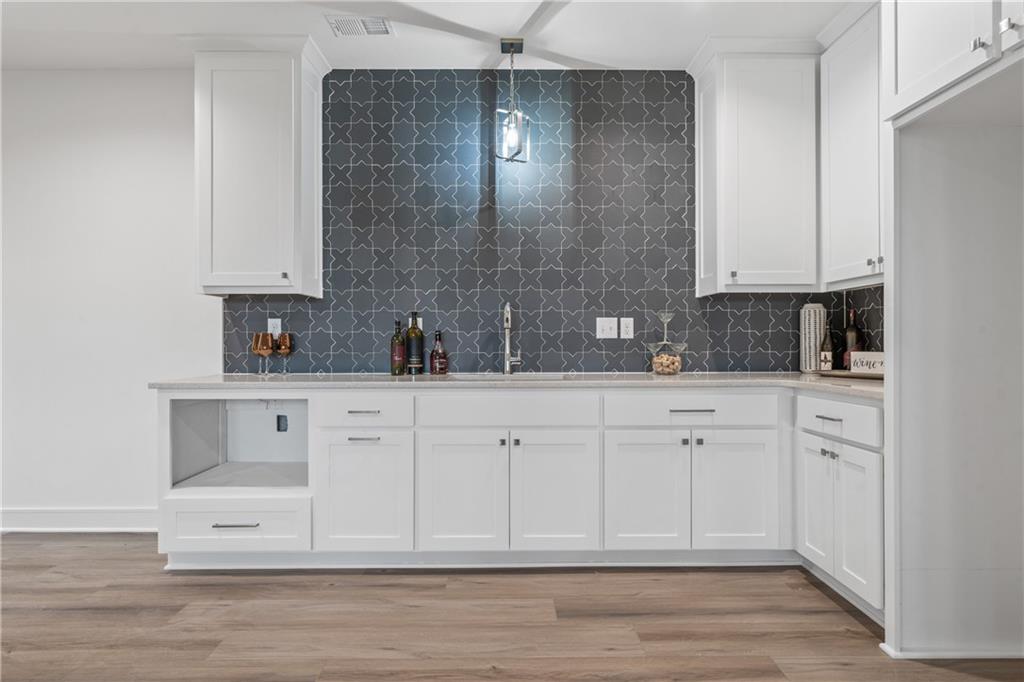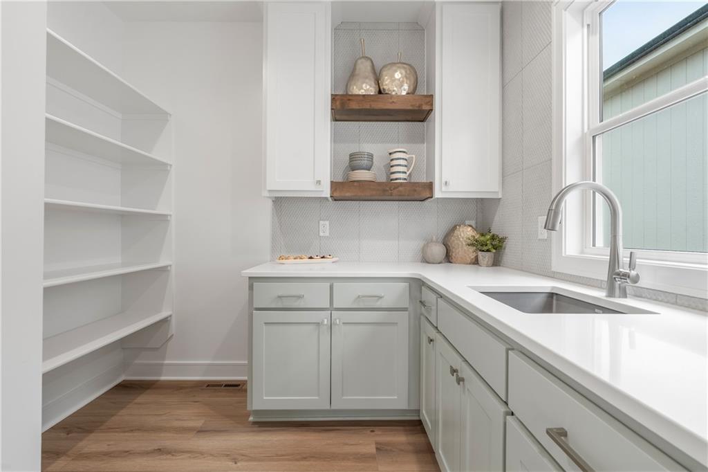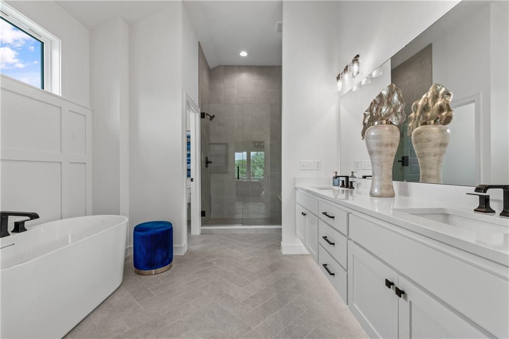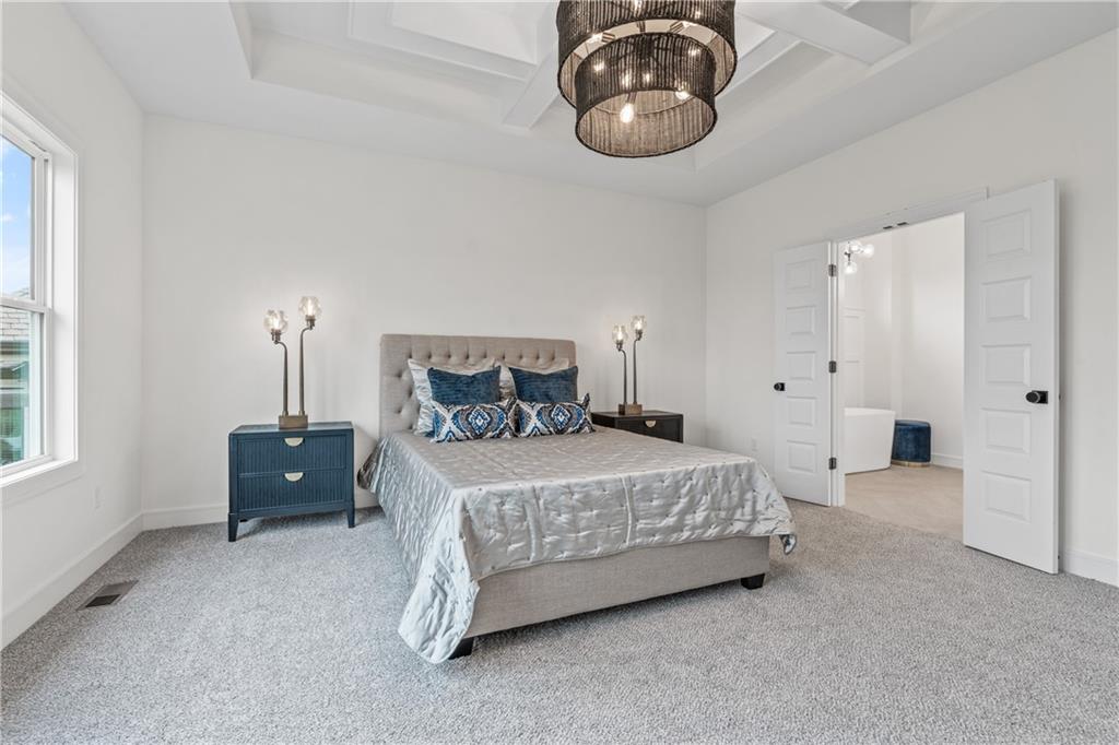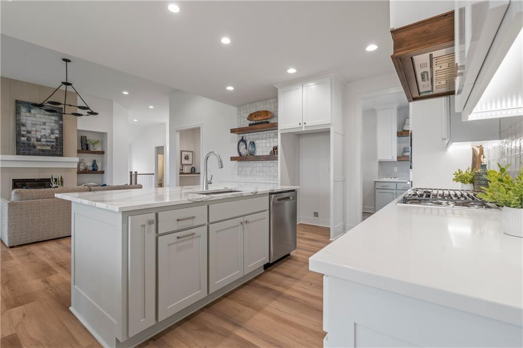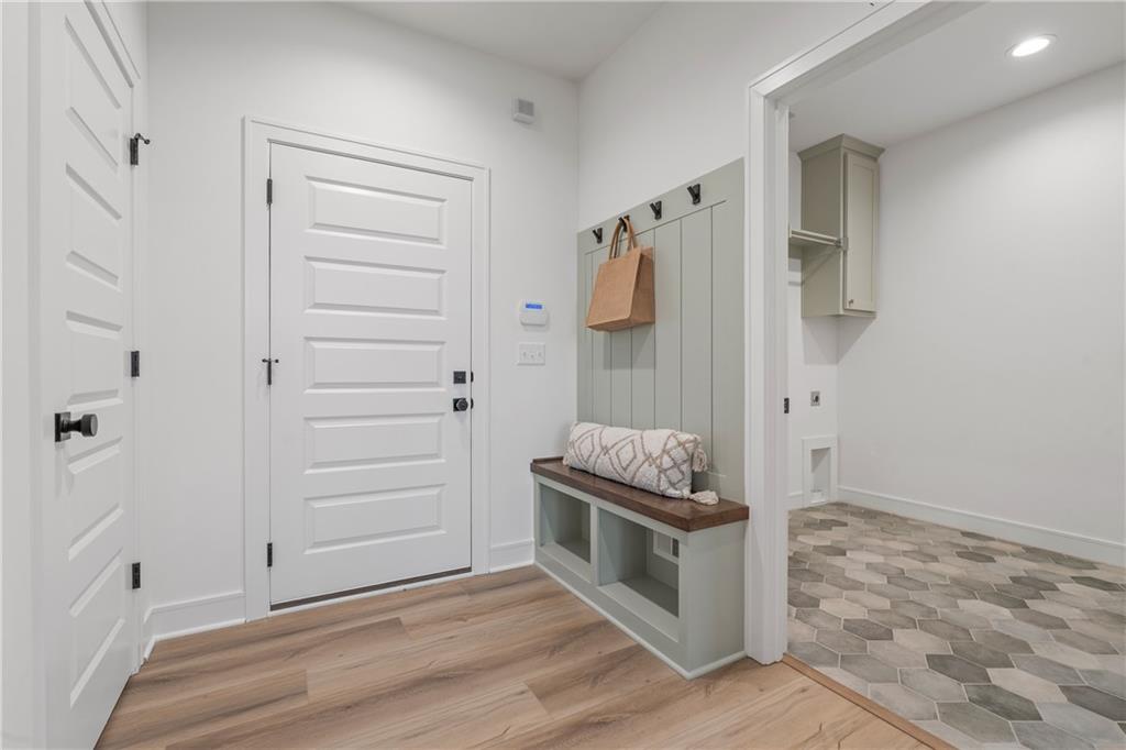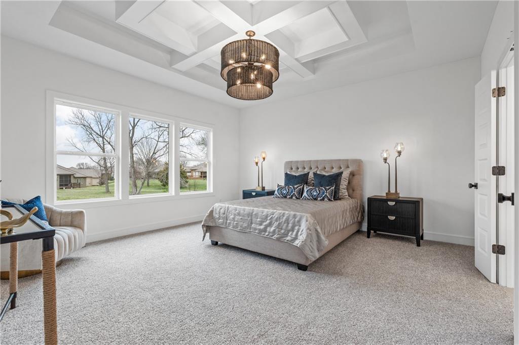 Welcome to your dream home sprawling 3bd 3.5 bth masterpiece offering 3109 square feet of meticulously designed living space. Step through the grand 8’ tall entry dr w/ elegant 18” sidelights into a home that immediately impresses w/ high-end finishes & thoughtful design 12’ Great Room features upgraded linear fireplace w/ blower & remote creating the perfect ambiance for relaxation or entertaining. Upgraded light fixtures illuminate the space while wide-plank luxury vinyl floors flow seamlessly through the entry kitchen, butler’s pantry, dining area, hallways, & great room. Indirect lighting in the kitchen & primary vanities adds a soft, ambient glow, while custom enameled wainscoting & design elements enhance the home's upscale feel.Gourmet kitchen w/ custom enameled cabinets, large pan drawers, soft close cabinets & oversized Cambria island complete w/ pull-out trash & additional storage. Butler's pantry w/ custom shelving & sink, provides a perfect prep area. High-end GE stainless steel appliances: 36” gas cooktop, Zephyr direct vent hood insert, oven w built-in microwave & tall tub dishwasher bring style & performance to your cooking space. Primary bd features a box-vaulted ceiling w/ custom design & spacious layout. Primary bth has herringbone-tiled floors, walk-in shower w/custom cut frameless shower Dr., free-standing soaking tub w/ custom wall panels & vaulted ceilings to create an open, airy atmosphere. Large custom walk-in closet offers ample space & organization for your wardrobe, while soft-close cabinet doors add an extra touch of luxury. Enjoy the privacy of BACKING TO GREENSPACE. Every detail has been carefully considered: 5-inch base trim, wide casing on doorframes & windows, U-shaped staircase w/ black iron spindles & custom maple rail w/stained endcaps, walk-in closets for all bds, all bathrooms feature tiled walls & floors, expansive lower-level storage, Oversized 3-car garage w/tall ceilings & no beam posts. Prime location backing to green space