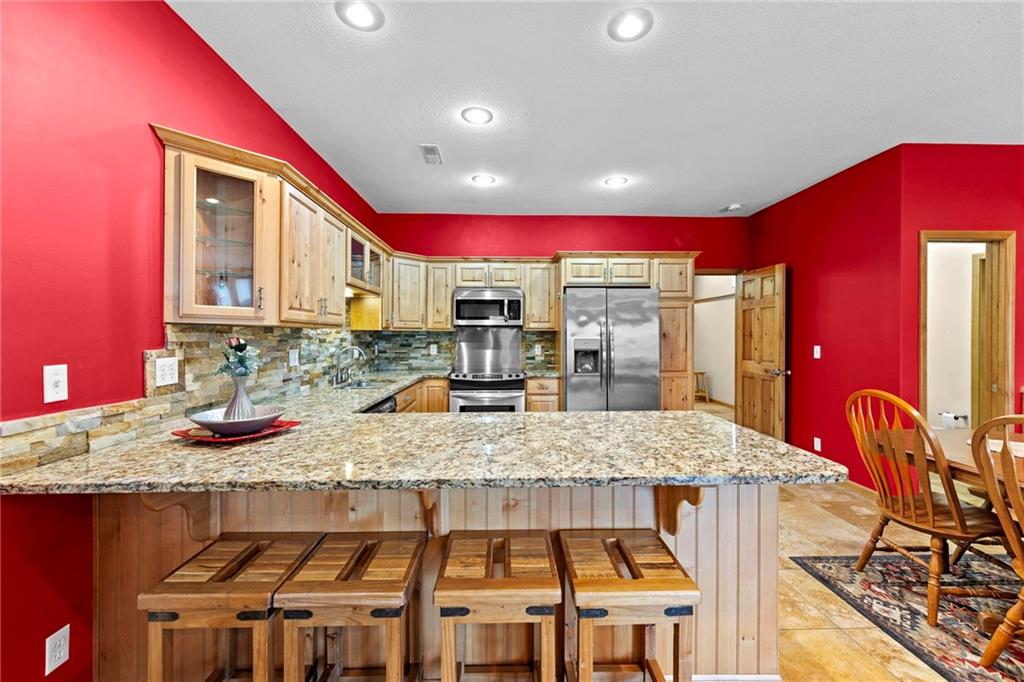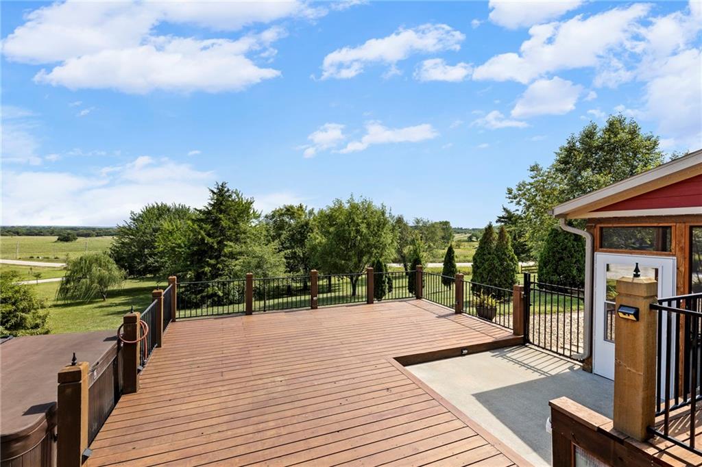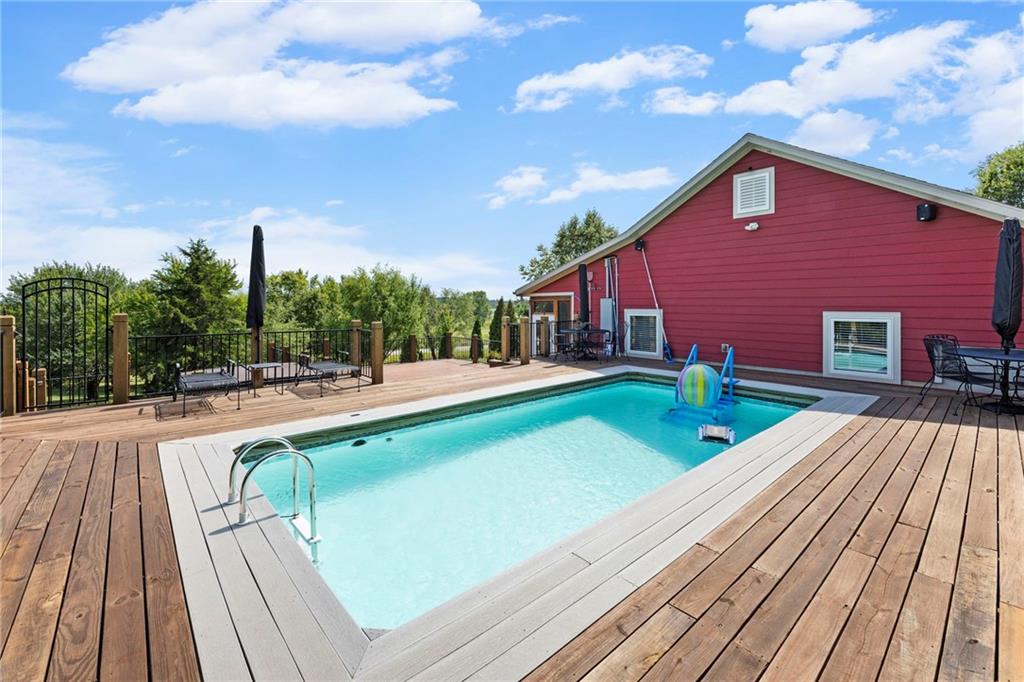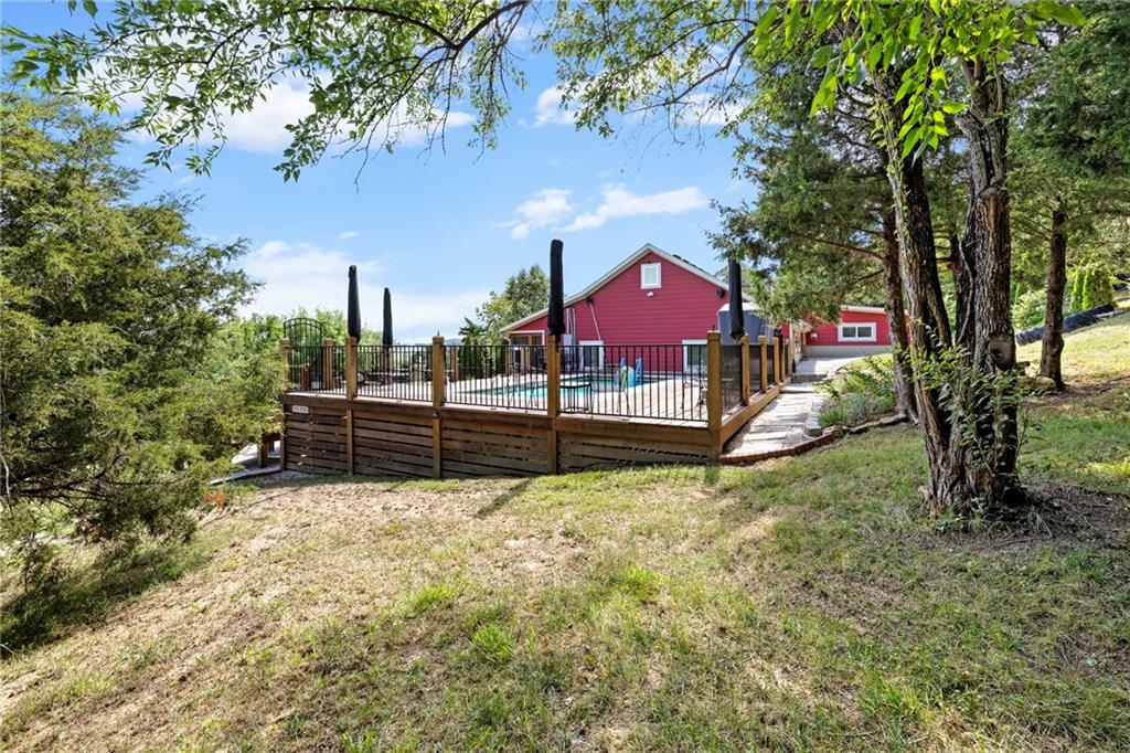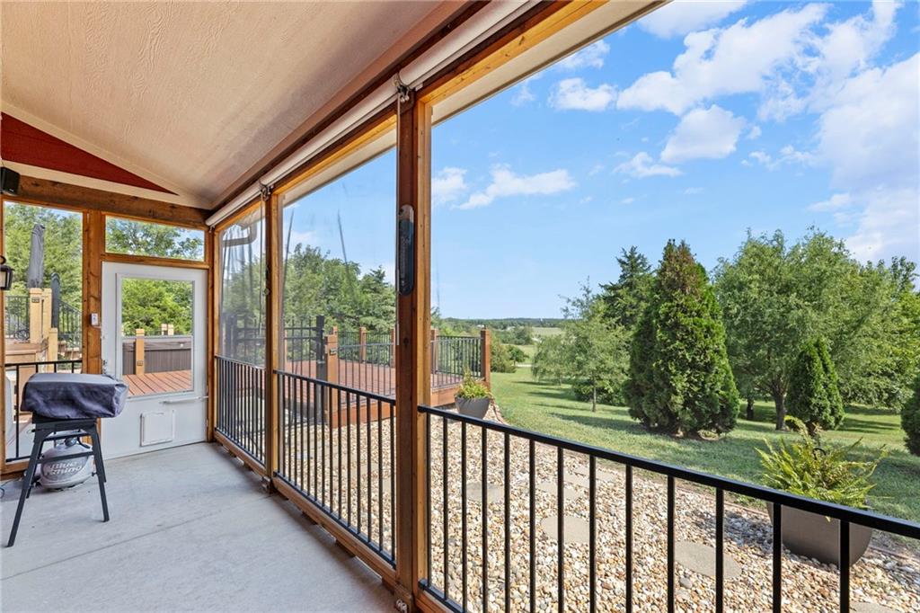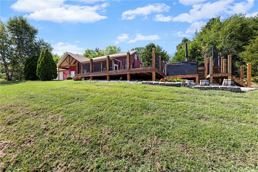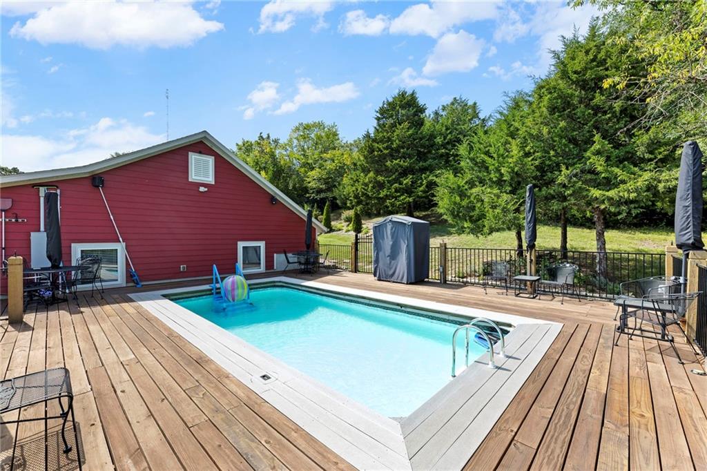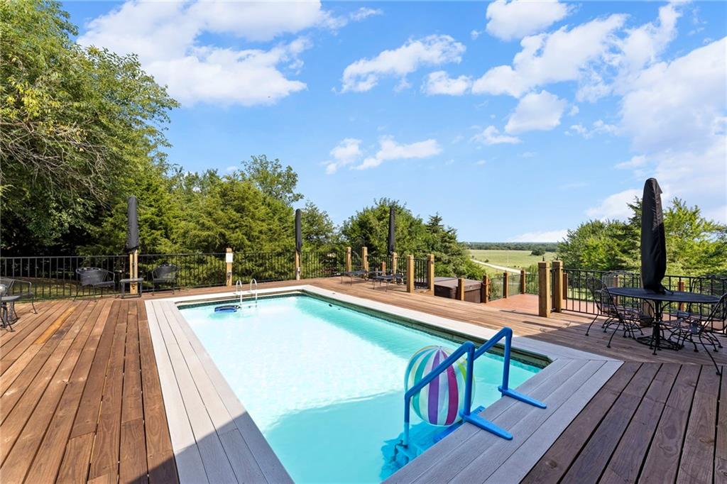 Welcoming wrought iron entrance gates, Cedar trim, this exquisite 3 Bedroom home perched on the side of a hill overlooking beautiful views for every season on a corner lot 1.5 miles from town on blacktop. The exceptional finishes in this home flow with Travertine tile floors and Granite countertops throughout, stainless kitchen sink, stove, microwave, refrigerator and dishwasher, Quartz backsplash, Jacuzzi bath, vessel sinks and new faucets, finished garages, multipurpose rooms, wood stove for those cold cozy nights. Electric LED fireplace, built in bookshelves and china cabinet, insulated interior walls for sound barrier, numerous closets finished for organization, wood doors, trim and cabinets. This multifunctional bathroom has 3 separate rooms! Storage with a drop-down ladder with extra attic space and shelving above the garage. For entertainment the screened porch, sauna, hot tub and inground/above ground 52"h/48"d 12'x24' pool with a simple filter pump for easy care, wrapped with wood decks and wrought iron rails, a luxury 6' Firepit, Horseshoe pit, chicken runs with hen houses. A 2nd entrance to the Estate with an outbuilding newly added in 2022, equipped with 100 amp electric breaker box. 3× 30/50 amp hookups for camper or boat. 4 miles to Hillsdale Lake or lake Miola. This 1500+ sq ft home is trimmed in switched lights with remote for different seasons, different colors or themes. Floodlights around along with a camera surveillance system including a monitor and 8 night vison cameras inside and out that can be monitored on your mobile phone while away. Plenty of Woods and View! You must see this higher quality home built for the Builder himself! This home is move in ready and has been very well kept with lots of mature landscape. Several flowering, colorful bushes and trees throughout the Seasons. It's like a new home without the wait time! A must see to appreciate!