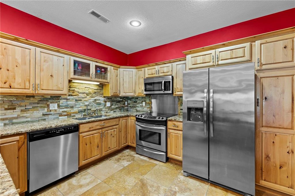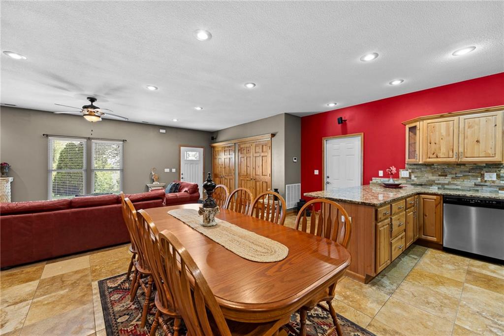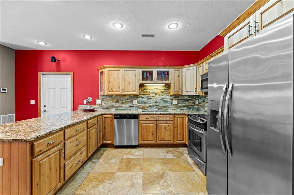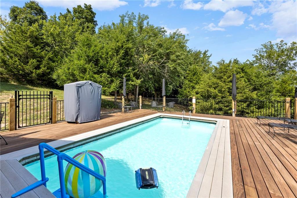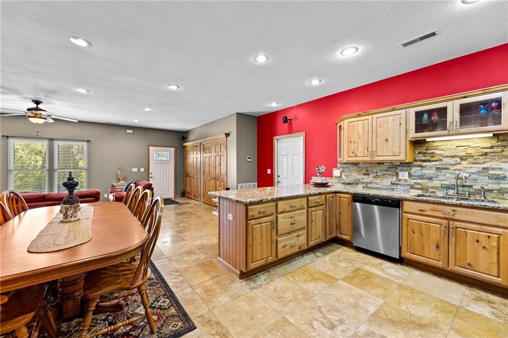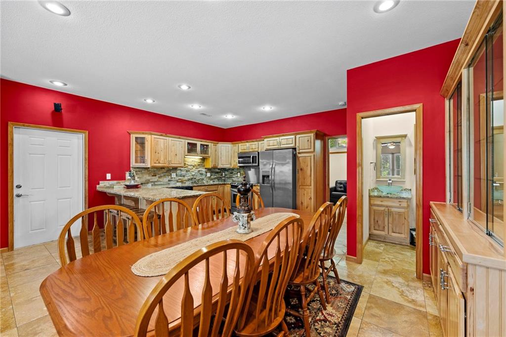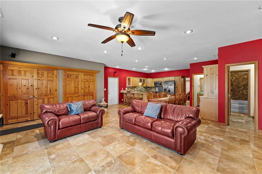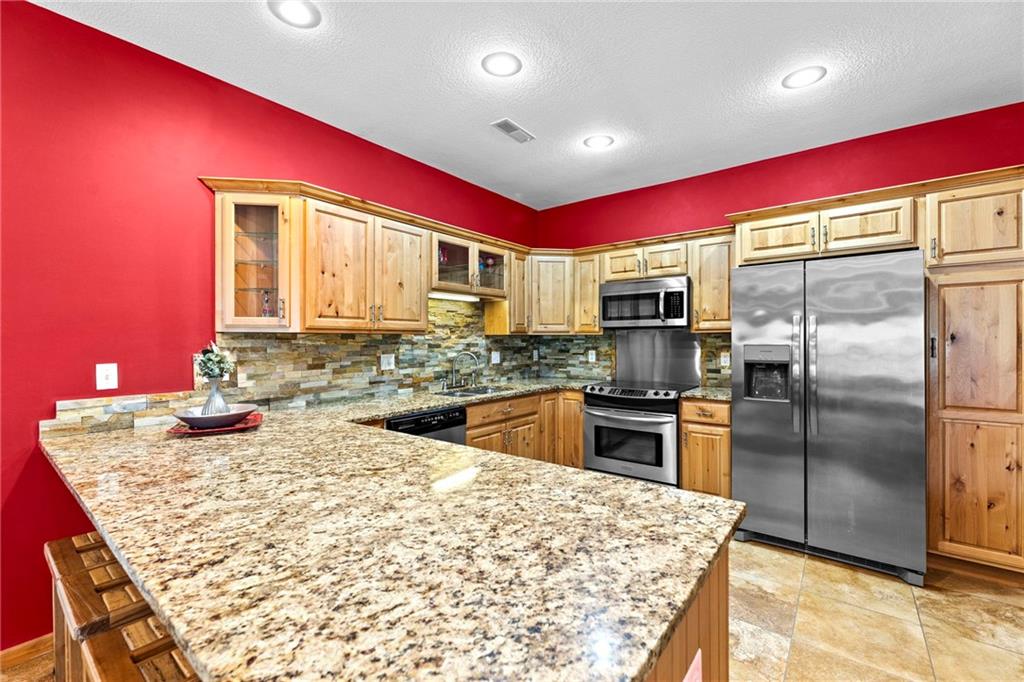 Welcoming wrought iron entrance gates, Cedar trim, this exquisite 3 Bedroom home perched on the side of a hill overlooking beautiful views for every season on a corner lot 1.5 miles from town on blacktop. The exceptional finishes in this home flow with Travertine tile floors and Granite countertops throughout, stainless kitchen sink, stove, microwave, refrigerator and dishwasher, Quartz backsplash, Jacuzzi bath, vessel sinks and new faucets, finished garages, multipurpose rooms, wood stove for those cold cozy nights. Electric LED fireplace, built in bookshelves and china cabinet, insulated interior walls for sound barrier, numerous closets finished for organization, wood doors, trim and cabinets. This multifunctional bathroom has 3 separate rooms! Storage with a drop-down ladder with extra attic space and shelving above the garage. For entertainment the screened porch, sauna, hot tub and inground/above ground 52"h/48"d 12'x24' pool with a simple filter pump for easy care, wrapped with wood decks and wrought iron rails, a luxury 6' Firepit, Horseshoe pit, chicken runs with hen houses. A 2nd entrance to the Estate with an outbuilding newly added in 2022, equipped with 100 amp electric breaker box. 3× 30/50 amp hookups for camper or boat. 4 miles to Hillsdale Lake or lake Miola. This 1500+ sq ft home is trimmed in switched lights with remote for different seasons, different colors or themes. Floodlights around along with a camera surveillance system including a monitor and 8 night vison cameras inside and out that can be monitored on your mobile phone while away. Plenty of Woods and View! You must see this higher quality home built for the Builder himself! This home is move in ready and has been very well kept with lots of mature landscape. Several flowering, colorful bushes and trees throughout the Seasons. It's like a new home without the wait time! A must see to appreciate!