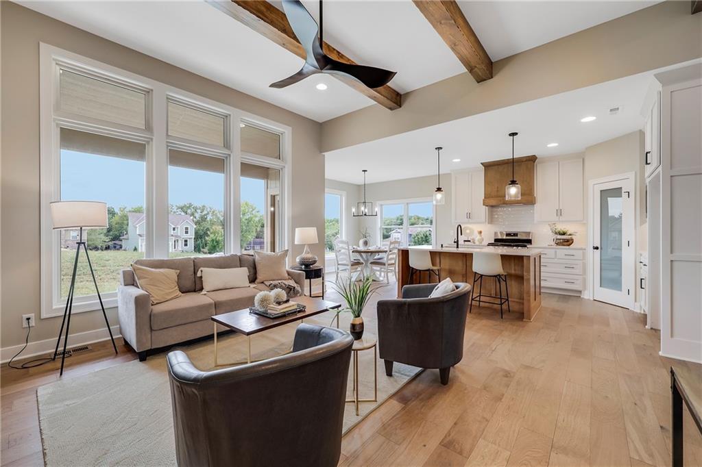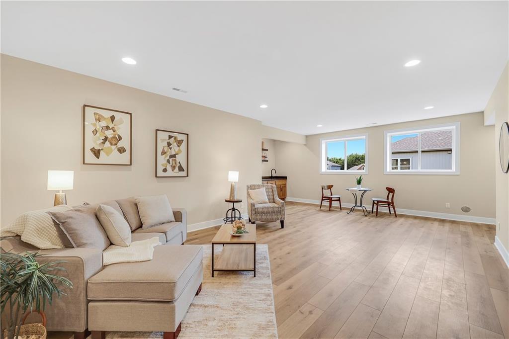 PRICE ADJUSTMENT-- WOW! How would you like turn "coming home for the holidays" into moving in to a beautiful, BRAND NEW home? Christmas is coming early to the buyer who comes forward now to cash in on the new improved price of this custom built property from A Place Called Home Construction Company! Builder has cut 10k from the asking price of this stunning & spacious reverse 1.5-story home-- now priced under $550K! You will be impressed the moment you step through the front door by all the extras and the meticulous attention to detail. Beautiful wood floors flow throughout the entryway, family room, dining area, and kitchen—creating a seamless and inviting layout perfect for entertaining. The heart of the home is the gourmet kitchen, complete with a large quartz-topped island, stainless steel appliances, a walk-in pantry, and stylish tile backsplash. The fireplace adds an impressive focal point, warmth and charm to the family room. The luxurious owner’s suite offers a peaceful retreat with an eye-catching accent wall and spa-like en suite bathroom featuring a shower, dual vanities, and a large walk-in closet. Downstairs, the finished lower level provides additional living space, ideal for a second family room, home office, gym, or guest suite—whatever suits your lifestyle. The partially covered patio allows shade for your outdoor furniture and open air for your backyard bar-b-que grill. This home is loaded with upgrades from a quality builder who just won't cut corners.. come see the difference for yourself. Act quickly to take advantage of the new, improved price on this impeccable new home.
