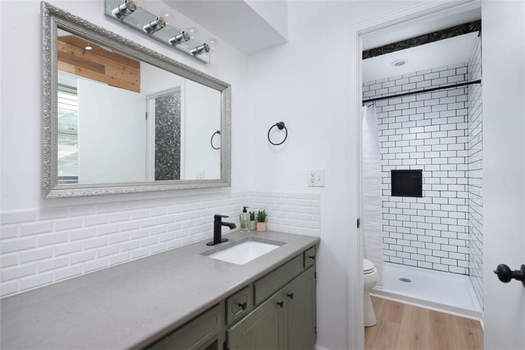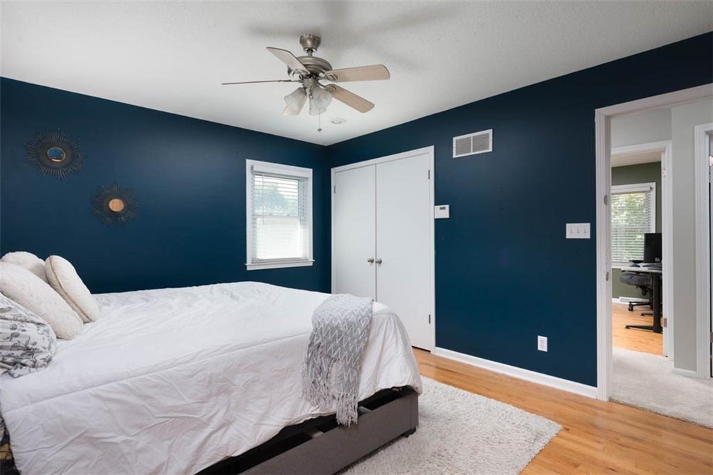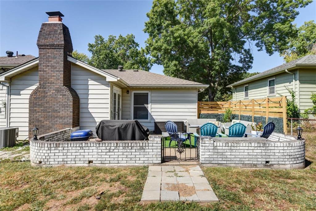 This house has ALL the mid-century modern charm you could want! Warm and welcoming, with a fantastic floor plan, in a nice quiet neighborhood with mature trees. Gorgeous colors throughout, with stylish light fixtures. Formal living room and dining room - a bright open kitchen with quartz counters, roomy pantry, and a tile floor leading to the world's coziest family room, with soaring ceiling, big brick fireplace, hardwood floors, and double doors out to a great patio and fenced yard! BRAND NEW ROOF and new carpeting here for the new owners! Master bedroom has hardwood floors, a cedar accent wall, ceiling fan, a double closet, and a newly updated en suite bathroom! Second and third bedrooms are both hardwood with ceiling fans and ample closet space. Second full bathroom is also newly updated. Downstairs, plenty of unfinished space for storage. This home is super convenient to everything KC (and nearby NKC!) have to offer, with easy trail access, and has great proximity to lots of shopping and dining, and highly-rated NKC Schools!