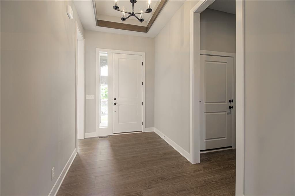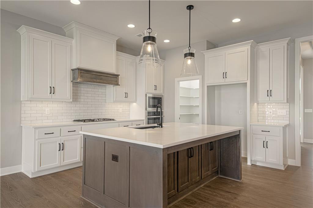Introducing The Cambridge—the newest Reverse 1.5 Story floorplan by award-winning builder Inspired Homes, located in the highly desirable Pryor Ridge community. This beautifully designed 4-bedroom, 3-bath home offers the perfect blend of luxury, comfort, and everyday functionality. Step into a bright, open layout with a wide entry, dramatic staircase, 10' ceilings, and large windows that fill the home with natural light. The chef-inspired kitchen features quartz countertops, designer tile backsplash, soft-close cabinetry, a large island, and a walk-in pantry—perfect for entertaining. The great room boasts a stone fireplace and opens to a covered patio and flat backyard, ideal for outdoor living. Main level traffic areas boast Revwood throughout -- a high quality and durable laminate flooring. The main-level primary suite offers a spa-like bath with a 6’ soaker tub, walk-in shower, dual vanities, and a walk-in closet with direct laundry access. The finished lower level includes a rec room, wet bar, two bedrooms, full bath, and generous storage. Located just minutes from Downtown Lee’s Summit, lakes, trails, shopping, dining, and top-rated schools. BUY WITH PEACE OF MIND, the convenience of new construction backed by a 2-10 Home Warranty, offering 10 year structural, 2 year mechanical, 1 year workmanship Please excuse our dust—this home is in its final Quality Assurance stage!