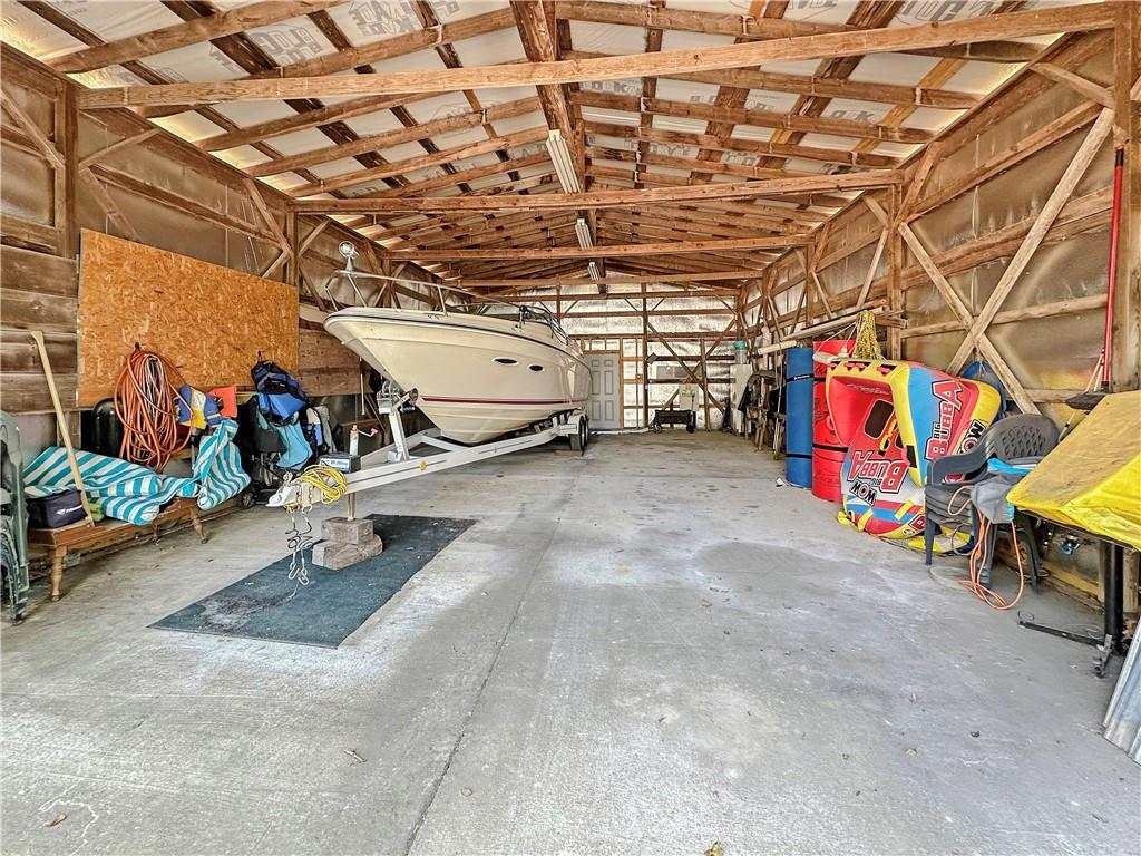 Looking for a perfect lake retreat? This cozy cabin is located at the 83mm of the Lake of the Ozarks in the Paradise Point Subdivision on three lots, offering plenty of space and storage. This home comes turn key, all furniture and appliances included with the exception of personal items and the Primo Water dispenser. The property includes a 40’x24’ storage building—perfect for your boat, car, or all your favorite lake toys. While the home itself is small, the vaulted ceilings and open-concept living/dining/kitchen area filled with natural light make it feel bright and spacious. The bedroom area offers flexibility to create a comfortable multi-bed sleeping space, complete with a full bath. The seller’s favorite spot is the covered porch, where you can enjoy a peaceful view of the lake across the road—ideal for relaxing or easily screening in for added comfort. Between the cabin and storage building, you’ll find a fire pit area, the perfect place to unwind after a fun-filled day on the water. Dock slips are also available for rent within the subdivision. This property has everything you need for a relaxing getaway or lake lifestyle retreat!