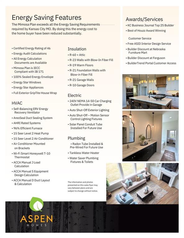 Model Home Now For Sale! Aspen Homes “Mimosa” 1.5 Story on Luxurious Walkout Lot! This stunning home is complete & ready to move in! Perfectly situated on a coveted walkout lot, backing to serene trees & green space, offering privacy and picturesque views. This luxurious home boasts a modern farmhouse exterior, featuring a blend of board and batten, lap siding, stone accents, and a striking metal roof over the front porch a true showstopper! Step inside and experience the elegance of this thoughtfully designed home, complete with high-end finishes throughout. The heart of the home includes a gourmet kitchen outfitted with JennAir luxury appliances, including a gas cooktop, sleek quartz countertops, and a spacious island with a fluted edge detail – perfect for cooking and entertaining. The open floor plan flows seamlessly into the cozy living room, where you’ll find a breathtaking stone-to ceiling fireplace, adding warmth and sophistication to the space. The primary suite is a sanctuary of luxury, featuring a zero-entry primary shower for easy access, a free-standing soaker tub for relaxation, and top-of-the-line design finishes throughout. This home is built for comfort and convenience, with a covered deck complete with premium Fiberean composite flooring – ideal for enjoying the outdoors year-round. Energy efficiency is at the forefront of this home’s design. With a Certified Energy Rating of 46, this property offers Energy Star windows and appliances, blown-in insulation, a tankless water heater, and an energy efficient HVAC system that includes a self-balancing ERV energy recovery ventilator and Aeroseal duct sealing system. You’ll enjoy a home that’s not only luxurious but also environmentally conscious. Located within the Award-winning North Kansas City School District in the Staley High School Attendance area. Hunt Midwest Community offering completed swimming pool and walking trails. Furniture not included. Taxes & SqFt estimated.