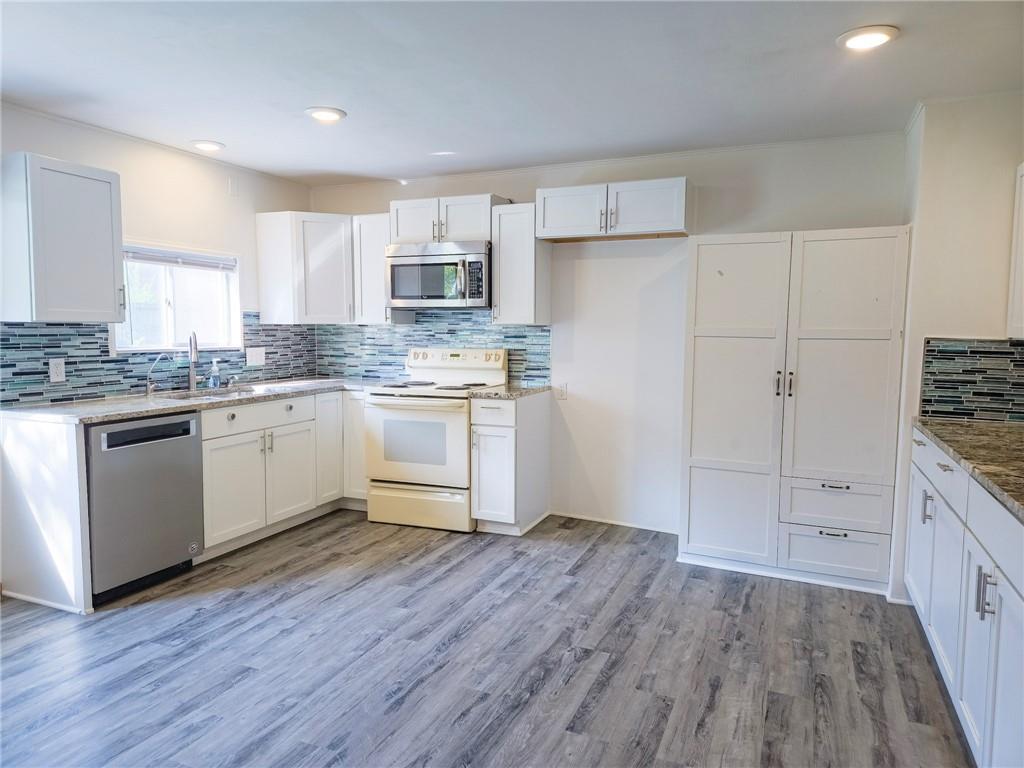 Welcome home to this updated ranch in Raytown. This property offers two bedrooms plus a finished lower level with a nonconforming third room and half bath, perfect for guests or a home office. The kitchen features new cabinetry, updated plumbing and electrical, and modern finishes that make the space feel bright and open. The full bathroom has been completely remodeled with tiled surfaces and designer touches. Luxury vinyl flooring, fresh interior paint, and new lighting throughout add to the clean, move in ready feel. Step outside to enjoy a brand new front deck, back patio, large fenced yard, and storage shed for all your extras. Conveniently located near Blue Ridge Blvd with quick highway access, this home offers space, updates, and value at an affordable price point.