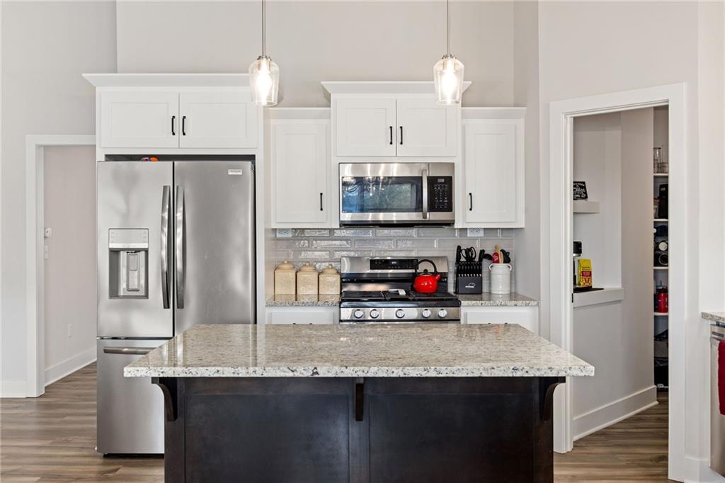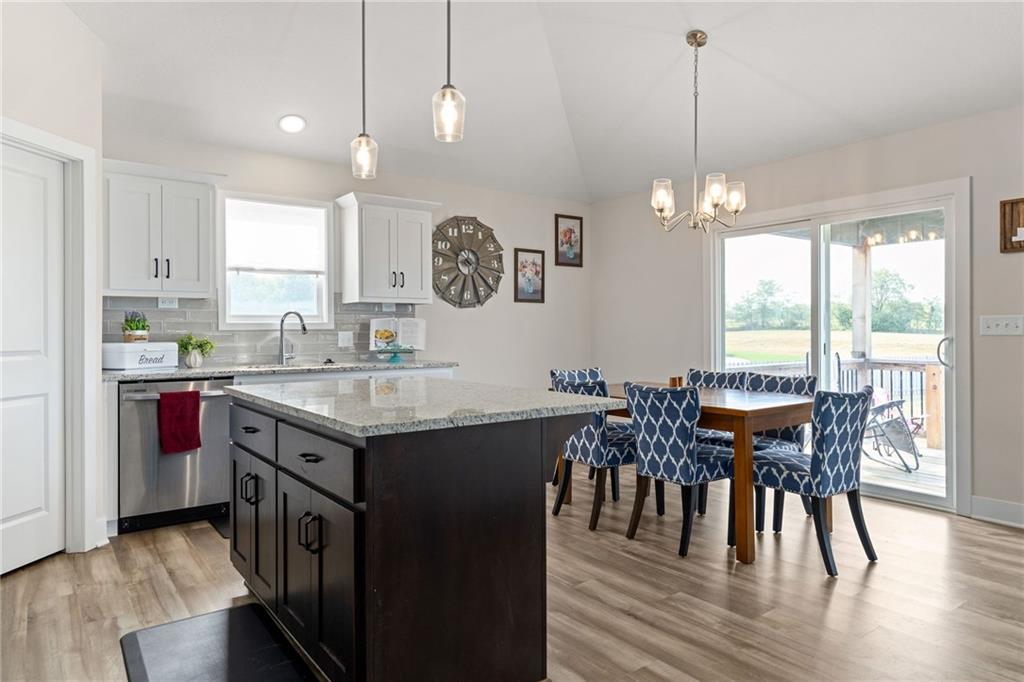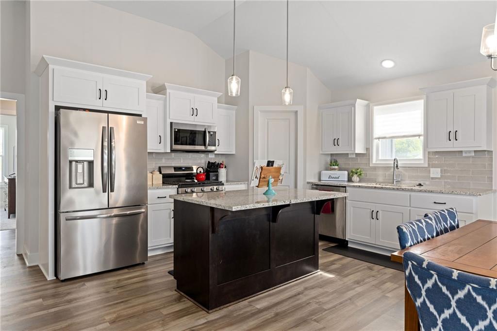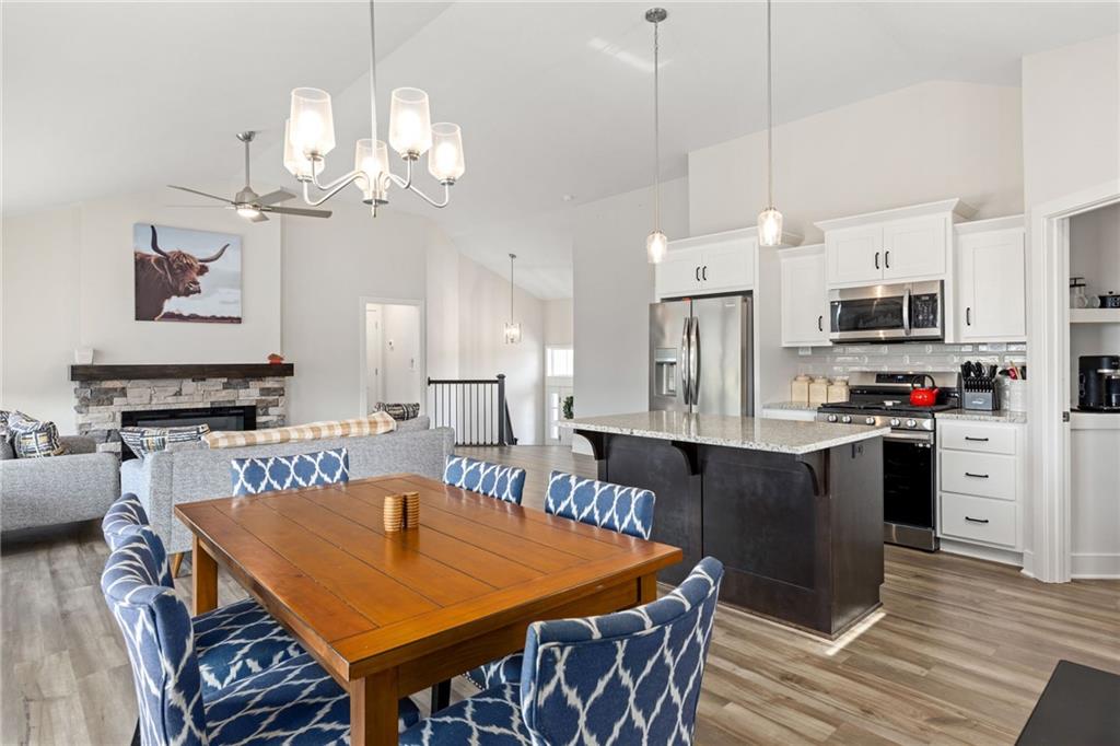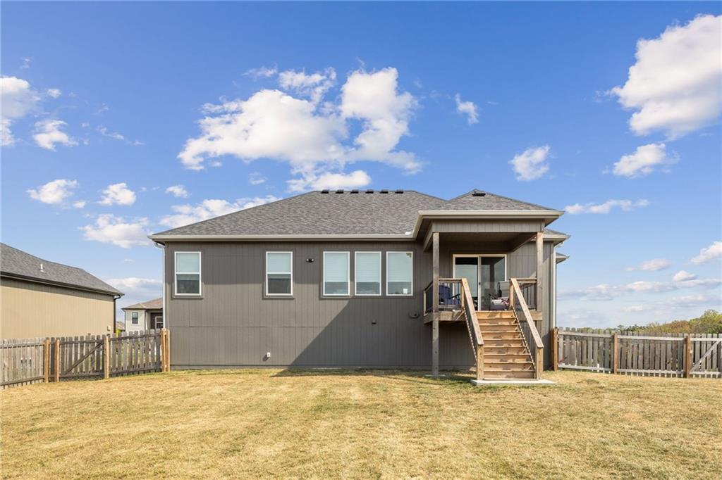 Located in the desirable Woodland Creek community, this beautifully maintained 4-bedroom, 3-bath home combines modern design with everyday functionality. The open-concept main level features a bright living area with a linear fireplace, large windows, and luxury vinyl plank flooring, flowing seamlessly into the kitchen with granite countertops, stainless steel appliances, and a spacious walk-in pantry. The primary suite offers a walk-in closet, double vanity, and private water closet, while two additional bedrooms on the main level provide flexibility for various needs. The finished lower level includes a large family room, fourth bedroom, full bath, and generous storage. Outdoor highlights include a fully fenced backyard, custom deck stairs, and mature lawn. Situated within the Smithville School District, residents enjoy a growing neighborhood with a community pool, convenient highway access, and a welcoming sense of connection. This home is move-in ready and thoughtfully upgraded for modern living.