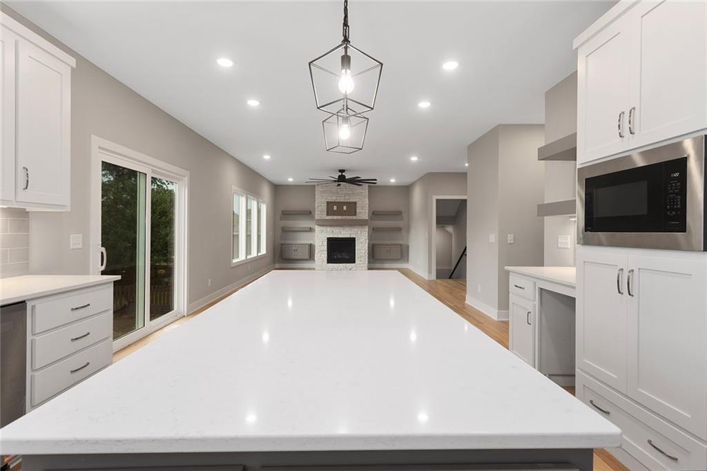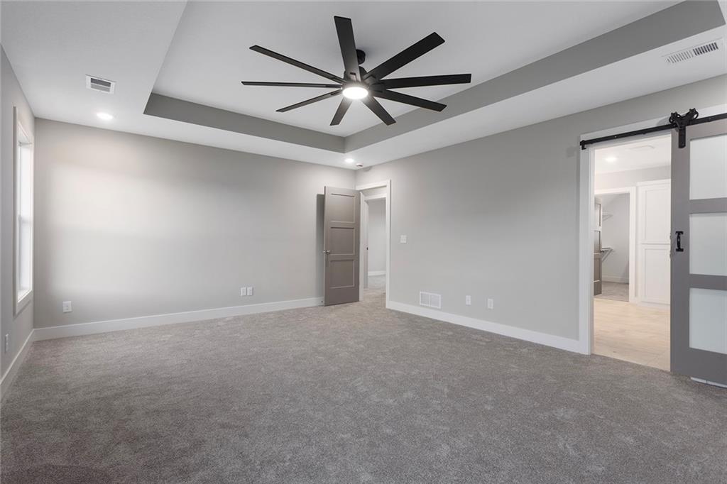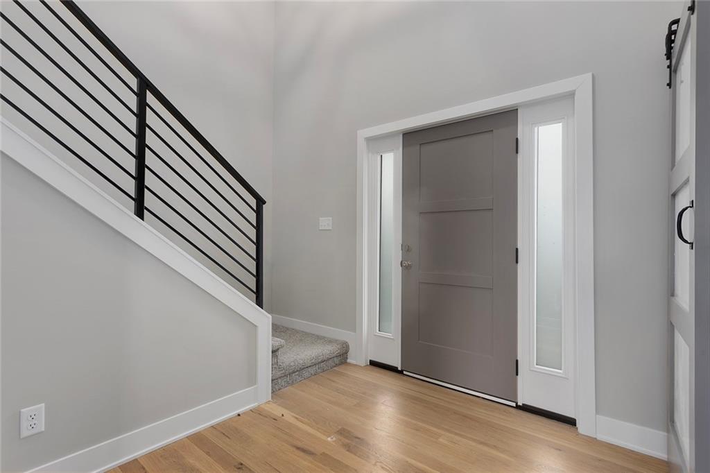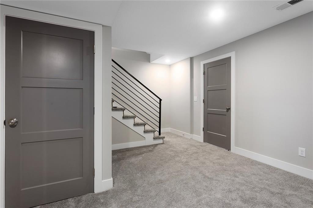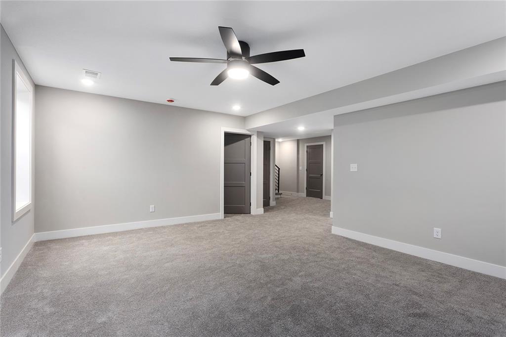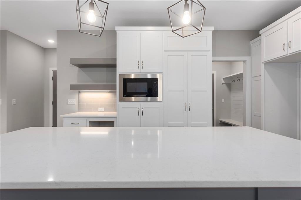 1 of 1!!! This floor plan is nowhere else in Blue Springs. This home is in the beautiful Parkway Estates. Beautiful covered front porch welcomes you in to this home! The home has 5 bedrooms (one possible office/Den is on the main floor). Home features an open concept living area with the kitchen, dining room, and living room with lots of real hardwood floors. Kitchen features all stainless-steel appliances (microwave is not over stove!), under cabinet lighting, boot box area, pantry, and a HUGE island all with Quartz tops. Beer-wine refrigerator. Basement has a large rec and a smaller rec room for arcade games or a poker table. This home is perfect for family gatherings and an entertaining. Outside, there is a large patio and lots of landscaping. SO much beauty to see! The neighborhood features a beautiful pool for residents. Don't miss out. 96% Efficient Gas Furnace with High Efficiency Blower Motor, 14.7 SEER2 Condenser, and humidifier. 3 car wide FULL driveway! 3rd car door is 1' wider than normal and is extra deep for any big vehicle's! No more parking OUTSIDE!!! 2 barn door sliders. 7 ceiling fans! MASSIVE master shower with seat! Secret room off a 2nd bedroom closet that every kid dreams of (or upstairs storage). WOW 1/2 bathroom! Several floating shelves and built-in cabinets! Real 3.25 white oak with UPGRADED #1 grade wood with natural water base finish! Storm/Safe room under the front porch! WHOLE yard sprinkler system! Upgraded Fescue grass. Pella windows and much much more! ALL done and will show very well!