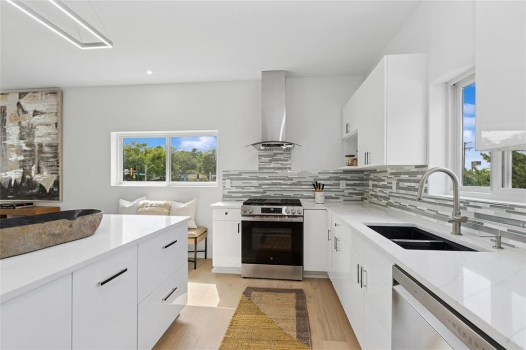 Smashing modern design. Sleek and effortlessly cool — this stunning modern home boasts crisp white lines, designer finishes, and incredible natural light throughout. This flexible layout features a beautiful sleek white kitchen with gas cooktop ,a big island and dining area that opens on to the main level deck, creating a seamless connection between indoor comfort and outdoor living. Upstairs boasts 2 bedrooms plus a loft and another private deck. The walkout lower level offers a beautiful 3rd en-suite bedroom bath and flex space that opens onto lovely patio and yard. With standout curb appeal and thoughtful upgrades at every turn, this home blends modern luxury with everyday functionality.