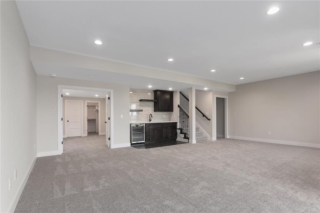 Welcome to an UPGRADED Catalina with SUNROOM by Crestwood Custom Homes at maintenance-provided Crestwood Village (the best location for new construction in town). You do not want to miss these views! Upon entry you will notice 11' ceilings in the entry and great room, walls of windows, and the PERFECT spot in the sunroom to sit, relax, enjoy coffee or read a book. The highlights of the kitchen include a kitchen island, gas stove, quartz counters, gooseneck faucet, and a walk-in pantry. Elevated dining area features a wall bump out, custom cabinetry and quartz counters, amplifying the look of the entire space. You will find beautiful hardwood floors throughout the main living area enhanced by extensive trim detail and a cozy, gas fireplace. The owner suite and bath are showstoppers. Large, zero-entry, walk-in shower and free standing tub makes this room feel like a spa retreat. Huge walk-in closet with tiered, off-season storage is adjacent to the laundry room, perfect design for ease and convenience. The finished lower level is ideal for entertaining with large family room, walk-up bar with mini fridge, sink and quartz counter top, 2 additional bedrooms, and an additional full bath (bonus space under the sunroom). Drink your morning coffee in the sunroom or on the covered deck while looking at the beautiful views. Additional outdoor entertaining area on the lower, covered deck outside the walkout, finished basement. Crestwood Village is a cascading, beautiful neighborhood with vibrant landscaping - come out and see for yourself! Close to paved walking/biking trails, restaurants, shops, grocery stores, medical facilities and highways. Your time is now your own - maintenance provided community $250/month - no more lawn work, snow removal, etc. **Home is at paint stage. PHOTOS OF A SIMILAR MODEL** Crestwood Village allows fences.