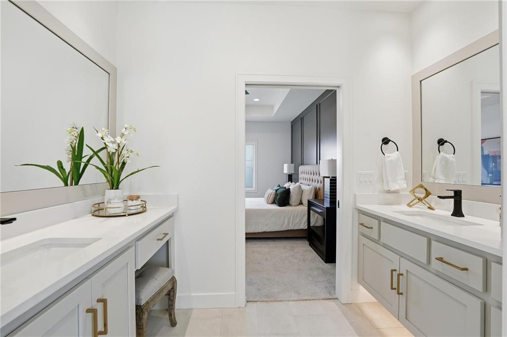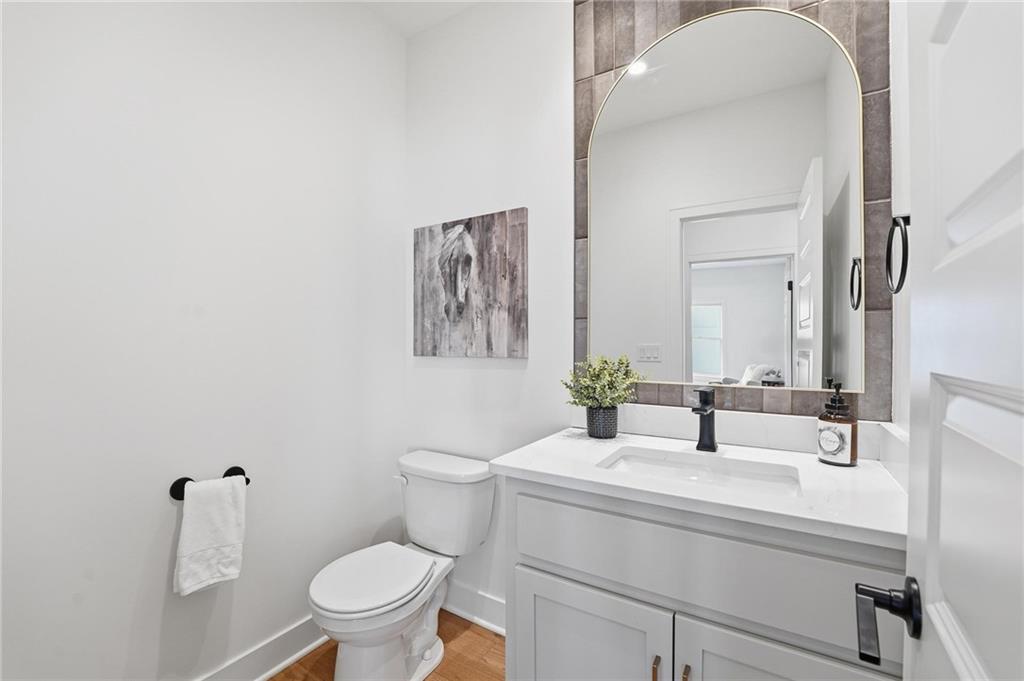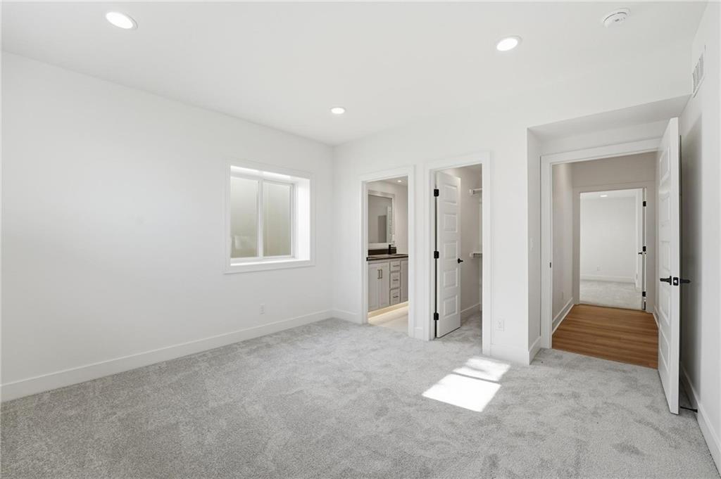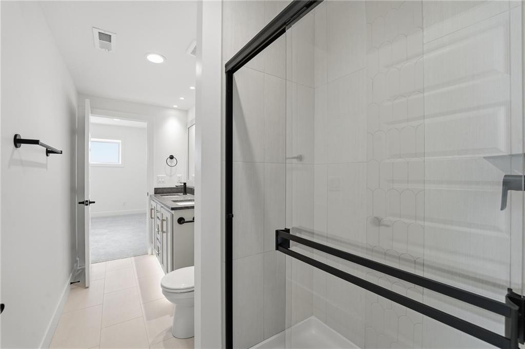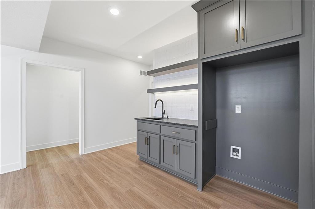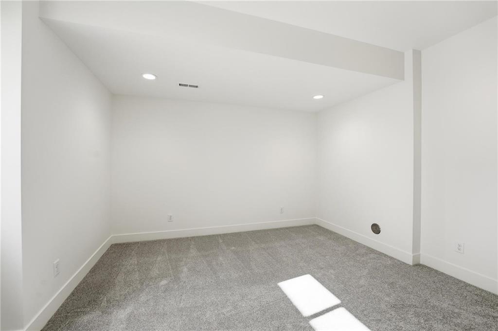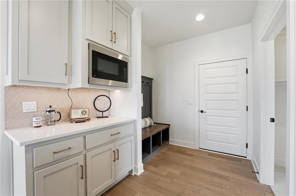 Step inside and you’ll immediately notice the bright, airy feel of this home. The open floor plan is accented by tall ceilings with exposed wood beams, oversized windows that pour in natural light, and wide-plank hardwoods that create a welcoming atmosphere. The living room is anchored by a striking floor-to-ceiling fireplace topped with a wood mantel, the perfect spot to gather with friends or relax at the end of the day. The gourmet kitchen is designed for both function and style, offering a large island with seating, quartz countertops, custom cabinetry, stainless steel appliances, and modern lighting. The adjoining dining area overlooks the backyard and provides direct access to the covered deck for outdoor enjoyment. The primary suite feels like a private retreat, complete with a tray ceiling, modern ceiling fan, soft carpet, and a bold accent wall. The adjoining spa-like bath is designed for relaxation, offering a calm and luxurious escape with a large shower, soaking tub, and double vanities. Additional main-level highlights include a private office, mudroom, walk-in pantry, and laundry room. The finished lower level expands the living space with a large recreation room featuring oversized windows, a wet bar, and a half bath. Two additional bedrooms share a full bathroom on this level. Additional upgrades include under-cabinet lighting and a variety of modern finishes throughout.