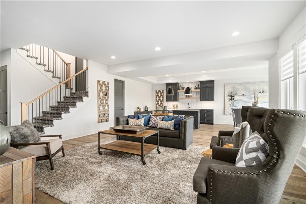 JFE Construction brings their fabulous Bayberry Rev. 1.5 sty plan to Johnson Counties newest maintenance provided community of Prairie Canyon! This beauty sits on a walkout lot with SE rear exposure backing to greenspace w/dramatic long vistas! Cathedral vaulted ceilings in the entry, Great rm & thru to the covered deck with FP. Open concept plan with Great rm., kitchen & dining all open to each other, large island & spacious pantry. Two bdrms & 2 baths on the main floor, 2 bdrms. & 1 bath down with plenty of Family & recreation space which includes a fantastic wet bar!