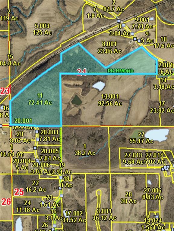 This land has it all! It's the perfect spot to build your dream home with over 15 tillable, flat acres and located a short distance outside of Richmond city limits. This location offers a short drive to schools, gas stations and all shopping and grocery needs. The thick timber is perfect for mushroom hunting in the spring, deer hunting in the fall, and even has a path of trees cleared for additional building sites on higher ground, with amazing views!