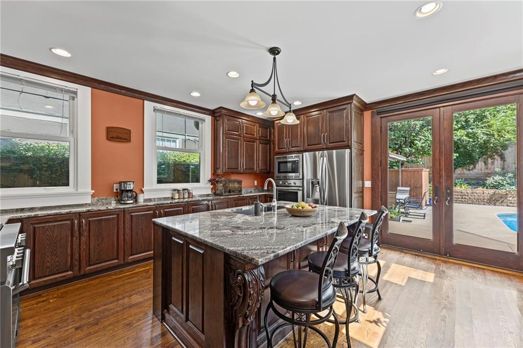 Warmer weather on its way, you need a pool..get moved in just in time!!! This stunning 3-story Central Hyde Park home perfectly blends historic character with modern comfort. Architectural details have been thoughtfully preserved, including original millwork, oak and fir hardwoods, walnut doors, and built-ins, while quality updates make the home ideal for today’s lifestyle. The main floor welcomes you with a formal dining room and a sunlit living room featuring a wood-burning fireplace with forced air insert. The fully remodeled kitchen is a showstopper, boasting a 7-foot island, granite countertops, stainless steel Thermador gas range, built-in convection oven and microwave, custom red oak cabinetry, and an oversized 11’ x 7’ butler’s pantry. Upstairs, the spacious primary suite includes a massive 15’ x 6’ walk-in closet, alongside two additional large bedrooms and full baths. The third floor offers incredible flexibility with a private apartment with two bedrooms, full bath, kitchen, and its own entry; ideal for guests, or rental income. Step outside to your own private oasis. The beautifully landscaped backyard is designed for entertaining with a sparkling in-ground pool, a wide wrap-around veranda, multiple lounge areas, composite decking, a Premier Pro-Tall Tuff Shed with loft, and a custom-built “tub house” complete with hot tub. Modern upgrades enhance the home’s comfort and efficiency, including newer windows, zoned HVAC, dual water heaters, a security system, gated driveway, and a full walk-up basement with abundant storage. This home truly offers the best of both worlds, historic elegance and modern living in one of the city’s most desirable neighborhoods