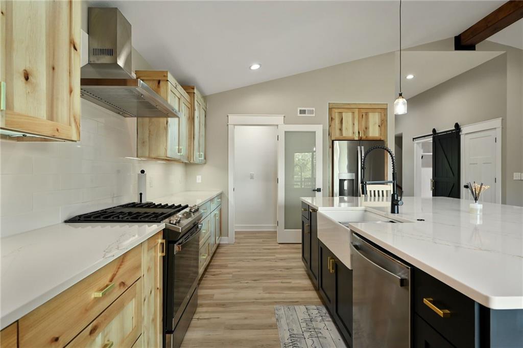 Turn Key Ready! Don't let the front fool you. this custom home on Over half Acre corner privacy fenced lot boost over 1800 square feet on the main level with an additional 1391 sq finished on the lower walk out level. This exceptional 2 year old home features 3-bedroom with potential for a 4th bedroom is a showcase of quality construction and custom detail. Built with 2x6 exterior walls and upgraded R-19 insulation in exterior walls including interior wall insulation, it offers energy efficiency, durability, and comfort. Inside, you’ll find vaulted ceilings, a custom trim package, and walk-in closets in every bedroom. The chef’s kitchen boasts knotty alder cabinetry, quartz countertops, a farmhouse sink in the massive island, and even a pantry with its own sink. The mudroom includes a dog-washing station, making everyday living convenient and functional. The lower-level walkout is designed for entertaining, with 9’ foundation walls, a wet bar with island, and washer/dryer hookups , Walk in shower and 3-0 doors throughout. Pocket office is great work space without taking up a bedroom! Step outside to enjoy the massive covered patio with a designated hot tub plug or relax on the covered composite deck with cedar accents and a see-through fireplace. Additional features include: Oversized garage with vaulted ceilings, Cedar exterior accents, Over 1/2 acre lot with 6’ privacy fence. This one-of-a-kind home blends luxury and function at every turn—perfect for those who want space, style, and thoughtful design. Over 600 SF of Patio, 450 SF of Covered Deck, Garage is over 700 SF (25' Deep) Exterior Custom Gem Stone Lighting Designed for multigenerational home Lower Level has 3-0 Doors , Laundry hookups, full size sink and fridge