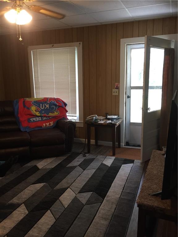 Charming 1920 Bungalow with 2 bedrooms, 1 bath home. Located on 2 lots in the quiet rural setting of Kincaid, KS. Lot has mature trees with a lot of shade. Home is being SOLD AS IS. Property also includes 2 bay, 2 story shed. 3 additional lots connected to the property have 20 fruit tress which include peach, apple, pear, plum and cherry. Also one walnut tree. There is a 75' drilled well on the property. Sewer & city hookups available.