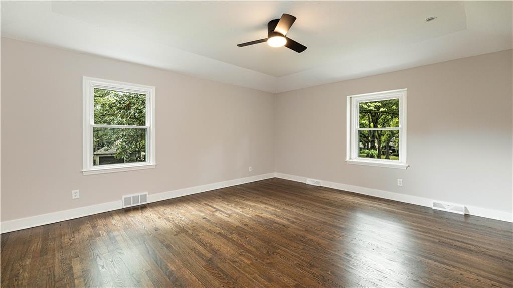 Welcome to this stunning two-story residence set on an impressive corner lot, where timeless design meets modern comfort. Every detail has been thoughtfully crafted to create a home that is both elegant and functional. The main level features a grand formal dining room (with beautiful LVP floors, a gourmet eat-in kitchen with granite countertops, gas range, microwave, and refrigerator, and a spacious living room centered around a warm gas fireplace. A sophisticated media room/office showcases rich hardwood floors and custom built-ins, perfect for work or relaxation. A main-floor laundry and guest half bath complete this level with convenience and style. Upstairs, retreat to the luxurious primary suite, complete with three custom closets and a spa-inspired bath featuring a double vanity and walk-in tile shower. Three additional bedrooms with gleaming hardwood floors provide comfort for family and guests, along with a spacious full bath with double vanity, soaking tub, and tiled shower surround. This exceptional property combines classic charm, luxurious finishes, and modern amenities, creating the perfect place to call home! AGENT/OWNER