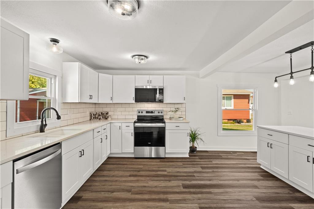 Beautifully updated 3 bedroom, 2 bath home with a large mud room/laundry on nearly half an acre backing up to park! This property has been renovated with a new roof, all new thermal windows, new HVAC, tankless waterheater, updated electrical with a new 200 amp breaker box, new siding on garage, front and back of house, new driveway concrete and so much more!. The detached 2 car garage has a Clean BASEMENT and sump pump. Inside you'll find new luxury vinyl plank flooring, new carpet and fresh paint. The kitchen offers plenty of storage with a pantry, center island, loads of new cabinets, quartz counter tops, new Range, microwave and dishwasher. Bathrooms have been completely refreshed with new tub, showers, vanities,flooring and toilets. With its prime location, modern updates, and spacious layout, this home is truly move-in ready! Owner/agent