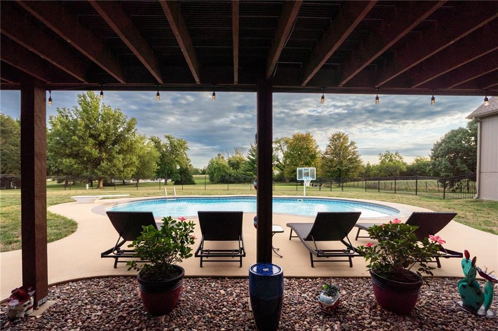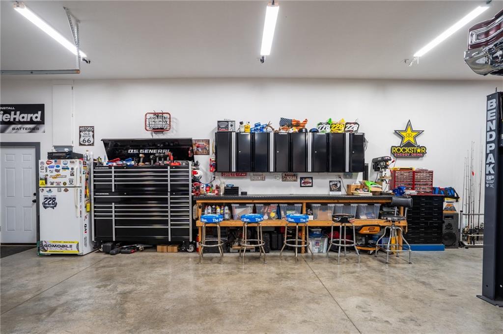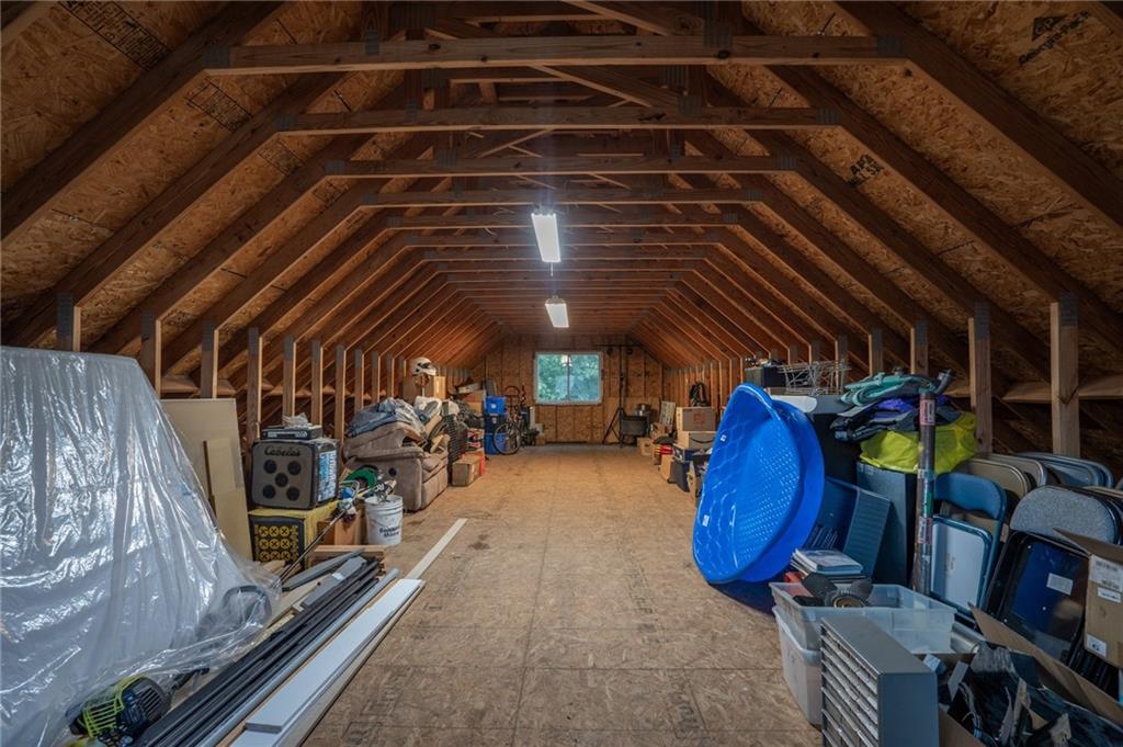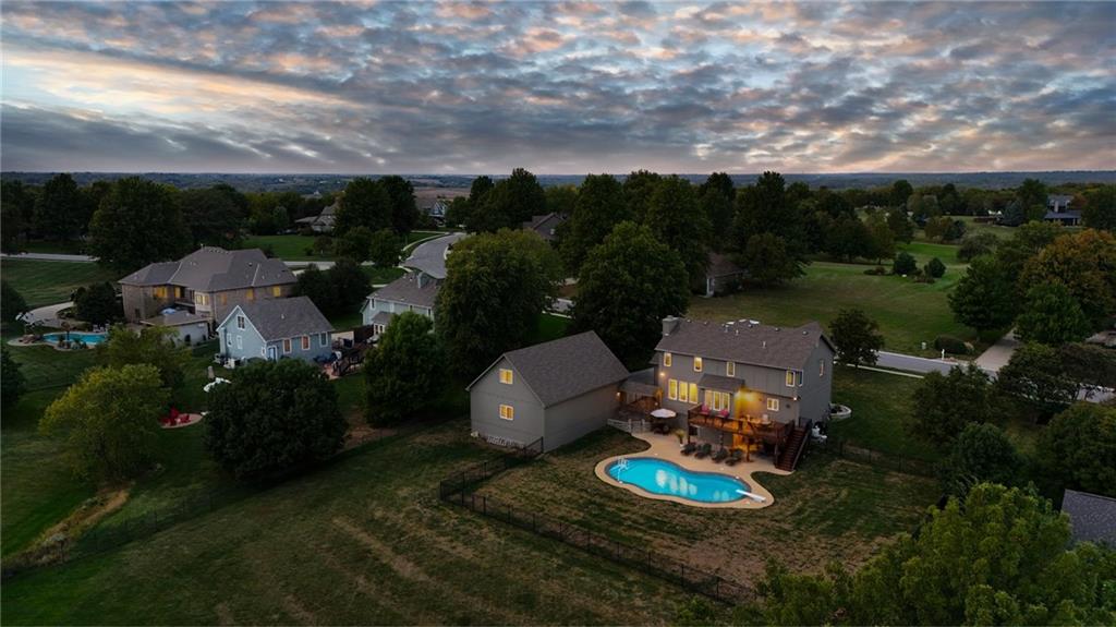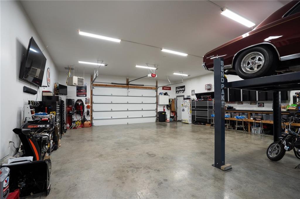 Car enthusiasts and business owners — this one’s for you! This incredible 4-bedroom, 3.5-bath home sits on 1.41 acres and offers an unmatched combination of space, function, and fun. The highlight is the 30' x 44' detached garage, featuring high-efficiency radiant floor heat, a forced-air furnace, and a finished lower level with LED lighting, 50-amp RV plug, and 220V service for welders or air compressors. With 11'2" ceilings and a 15' x 44' loft ready to finish or use for storage, this space is ideal for hobbyists, collectors, or small business owners. A huge driveway offers plenty of room for parking and maneuvering. Enjoy summers in the 40' x 22' heated saltwater pool with a diving board and basketball goal, surrounded by a covered patio and maintenance-free deck extending across most of the back of the home. There’s even a bonus lower garage perfect for pool toys or lawn equipment. Inside, you’ll find a walk-out finished basement, new carpet on the top two floors, and newer exterior paint. The kitchen is equipped with upgraded Dacor appliances (cooktop, microwave, & wall oven) and ample cabinetry for all your storage needs. HVAC is zoned with uppper unit located on second floor. The oversized attached 3-car garage adds convenience, while the detached garage is a dream workspace. Located in a quiet neighborhood close to both the elementary and middle schools, this home offers a partially fenced yard with black aluminum fencing around the pool, combining privacy, functionality, and stunning curb appeal. BONUS! Current outbuilding is attached to the house by a portico and you can still build an additional 30'x32' detached building on the property