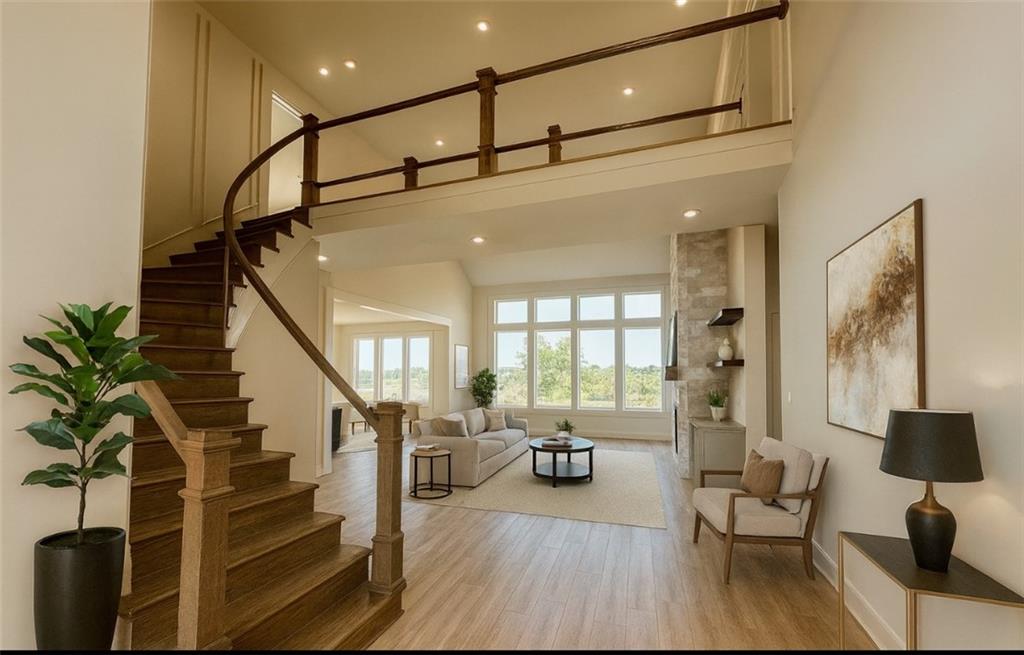 Builder Special: $10,000 for buyer to use how you choose! Use it towards price reduction, upgrades, appliances, closing costs, etc! Do not miss this amazing opportunity Welcome to KC Builders & Designs Geneva 1.5 story plan, featuring a grand curved staircase at the entry and beautiful hardwood floors throughout. The gourmet kitchen boasts a large center island, ample cabinetry, and a spacious walk-in pantry. The main-level primary suite offers a luxurious bathroom retreat, while an additional bedroom or office with a ¾ bath adds flexibility. Upstairs, each secondary bedroom includes a generous walk-in closet. With a 3-car garage and thoughtful design throughout, this home perfectly blends elegance, function, and comfort. Home can close first week of November 2026
