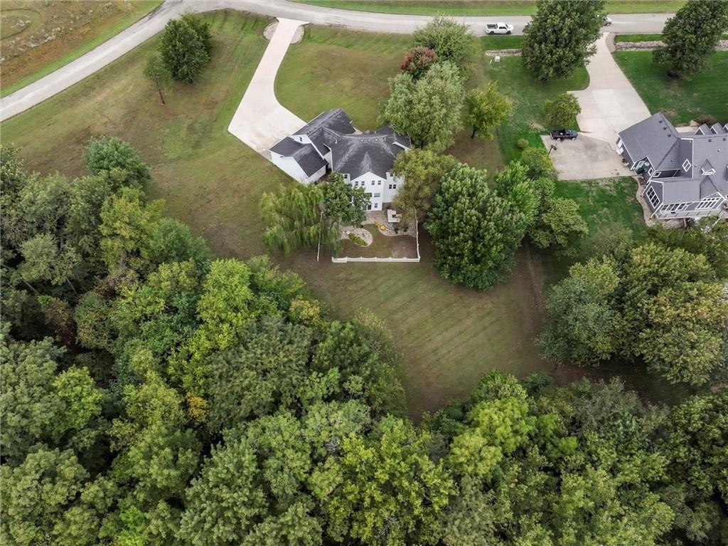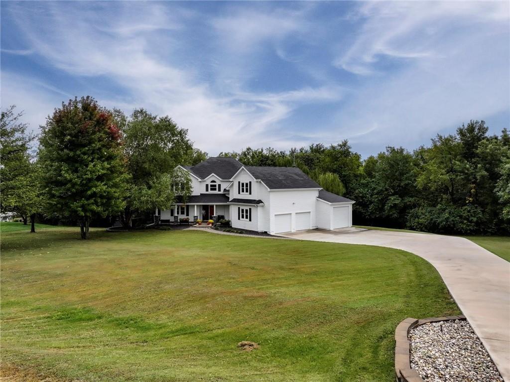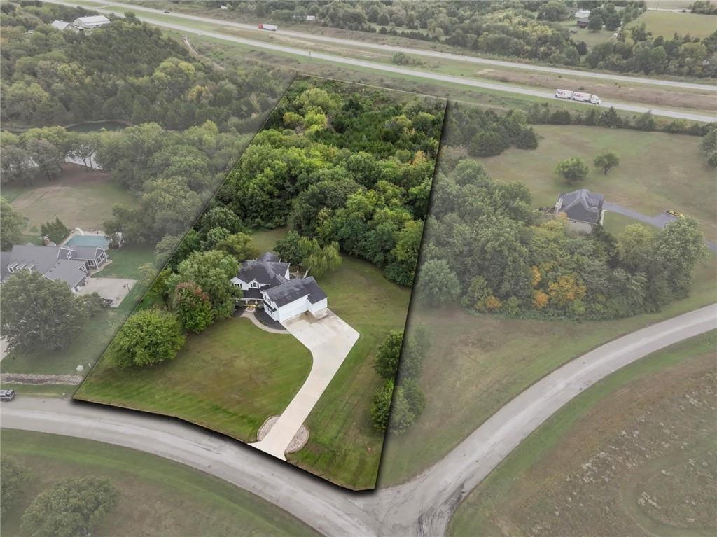 Come and look at this beautiful custom built home on 3.4 wooded acres! You'll love the custom touches of this 4 bedroom, 3 1/2 bath home! Soft close cabinets, LVP flooring, solid surface tops, enormous closets, and a huge master suite on the main level, upstairs there is a large, open bonus room currently used as sewing/craft room, a sitting room/office, a family room currently used as a teaching area, 3 bedrooms and two full bathrooms, in the basement there is a huge recreation room that walks out to a large patio with an outdoor fireplace and kitchen for entertaining with wonderful views of the backyard and beautiful timber. There is also a nice synthetic deck off the dining area, 3 car attached garage and a quaint covered porch! All this on a paved road in the highly desirable Greenwood Estates of Ottawa. Conveniently located just one mile outside of town with easy access to two I-35 exits. The map is for general reference only and may not reflect exact locations or dimensions. Floorplan is for illustrative purposes only. All dimensions and layouts are approximate.