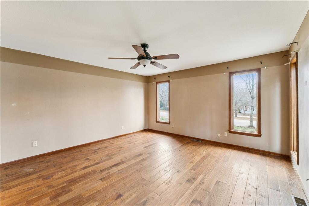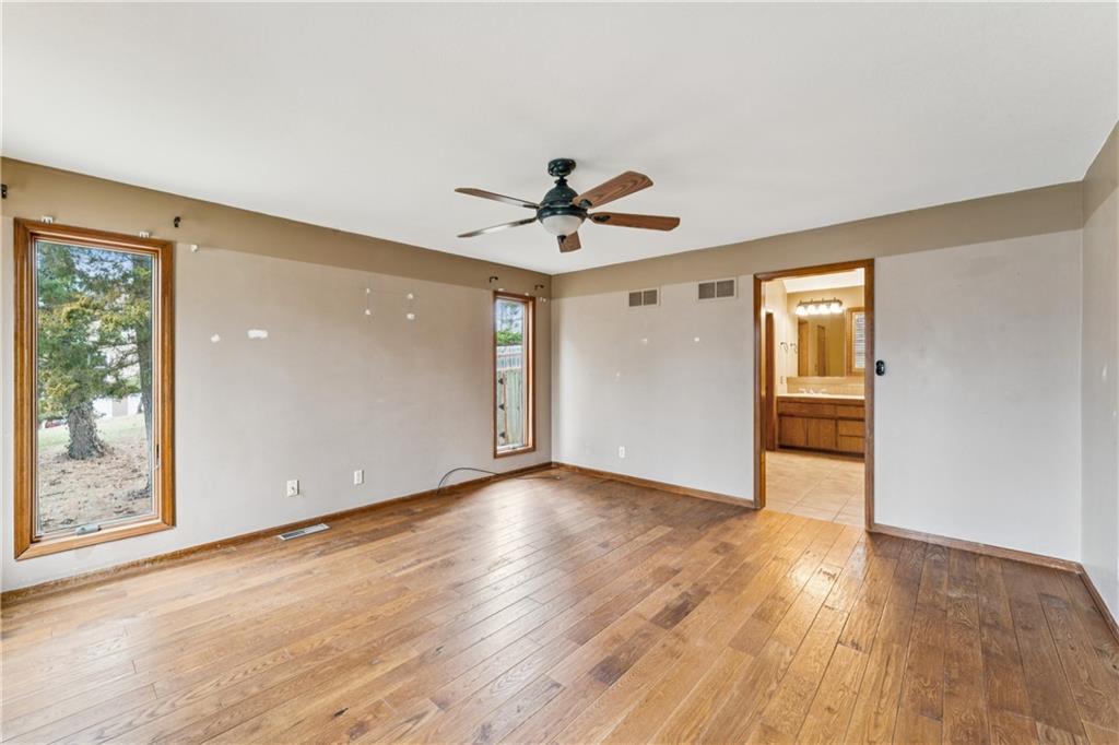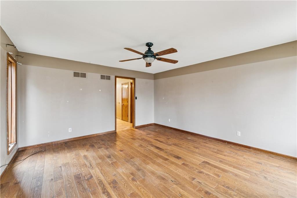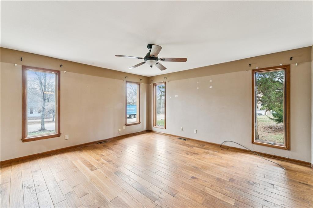 PRICE REDUCED, BRING AN OFFER-Wonderful Quivira Woods home an exceptional 1.5-story floor plan in western Shawnee, Kansas, offering the space, flexibility, and warmth that make everyday life feel easier and more intentional. 100% hardwoods and tile (minus the staircases).Thoughtfully blending contemporary charm with classic comfort, this home features 4 bedrooms, 2.5 bathrooms, and 3,120 total square feet of finished living space, giving you room to grow, gather, and truly settle in. Set on an oversized 20,999-square-foot lot, the home offers the privacy and breathing room today’s buyers crave, with endless potential to customize for multigenerational living, or dedicated personal space for work, wellness, or hobbies. Natural light fills the open living areas, anchored by a cozy hearth-room fireplace perfect for calm mornings and family connection. The eat-in kitchen and formal dining room flow effortlessly for daily routines and celebrations alike, while the generous main-floor primary suite easily accommodates a king-size bed, sitting area, walk-in closet, and a step-in ceramic tile shower. Kitchen features eat-in breakfast area, solid surface electric cooktop, plenty of counter and storage space, and the warmth of stained solid wood cabinetry. The finished lower level expands your options with a second family room, workout area, and a separate workshop or hobby space ideal for creativity or organization. Outside, an oversized fenced yard and extra-wide driveway create space for play, pets, entertaining, and everyday ease. Located in the highly rated De Soto School District—Riverview Elementary, Monticello Trails Middle School, and Mill Valley High School!