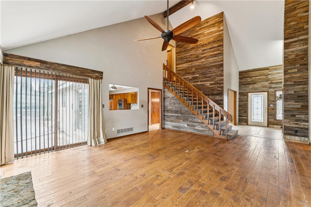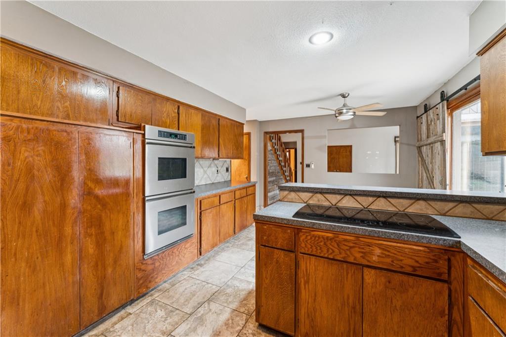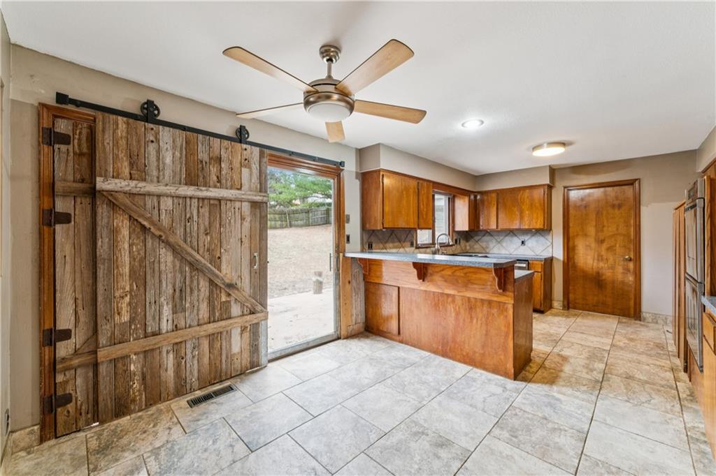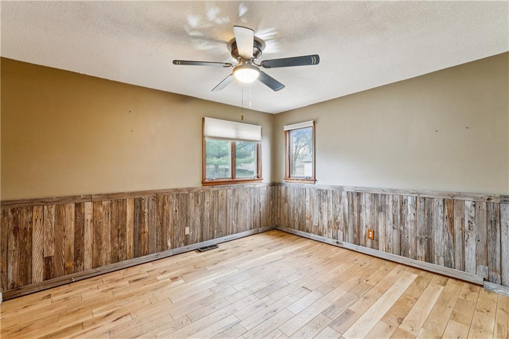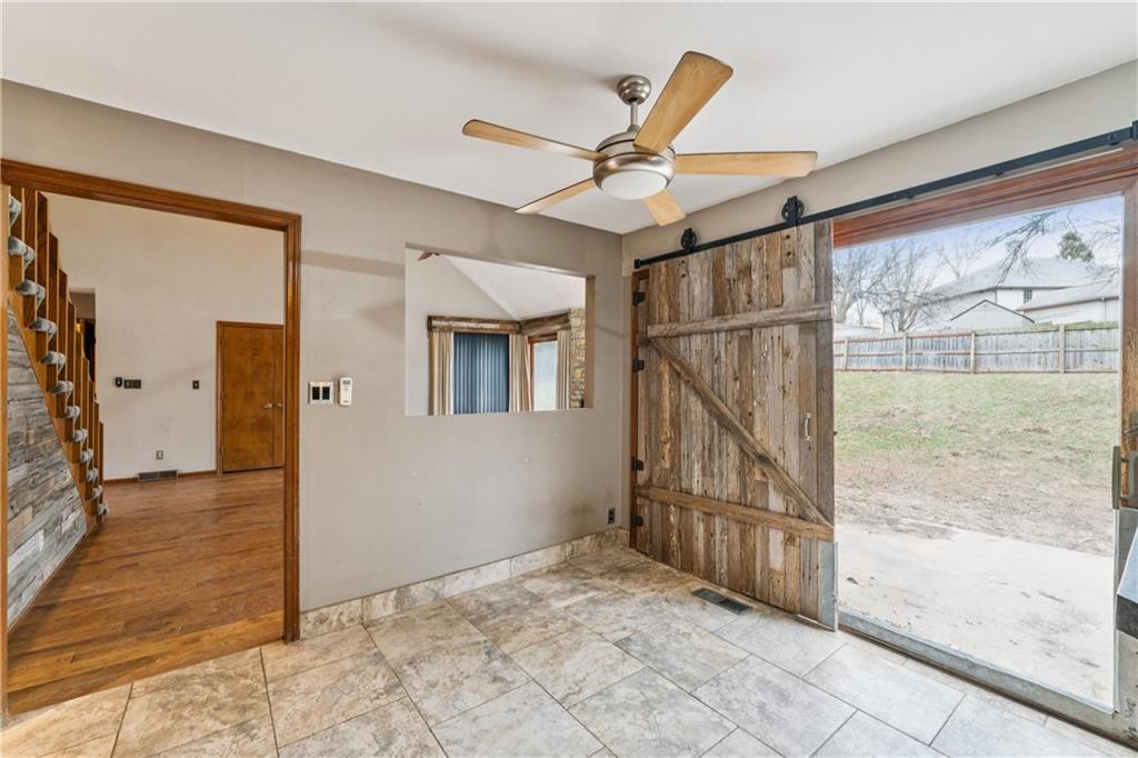 PRICE REDUCED, BRING AN OFFER-Wonderful Quivira Woods home an exceptional 1.5-story floor plan in western Shawnee, Kansas, offering the space, flexibility, and warmth that make everyday life feel easier and more intentional. 100% hardwoods and tile (minus the staircases).Thoughtfully blending contemporary charm with classic comfort, this home features 4 bedrooms, 2.5 bathrooms, and 3,120 total square feet of finished living space, giving you room to grow, gather, and truly settle in. Set on an oversized 20,999-square-foot lot, the home offers the privacy and breathing room today’s buyers crave, with endless potential to customize for multigenerational living, or dedicated personal space for work, wellness, or hobbies. Natural light fills the open living areas, anchored by a cozy hearth-room fireplace perfect for calm mornings and family connection. The eat-in kitchen and formal dining room flow effortlessly for daily routines and celebrations alike, while the generous main-floor primary suite easily accommodates a king-size bed, sitting area, walk-in closet, and a step-in ceramic tile shower. Kitchen features eat-in breakfast area, solid surface electric cooktop, plenty of counter and storage space, and the warmth of stained solid wood cabinetry. The finished lower level expands your options with a second family room, workout area, and a separate workshop or hobby space ideal for creativity or organization. Outside, an oversized fenced yard and extra-wide driveway create space for play, pets, entertaining, and everyday ease. Located in the highly rated De Soto School District—Riverview Elementary, Monticello Trails Middle School, and Mill Valley High School!