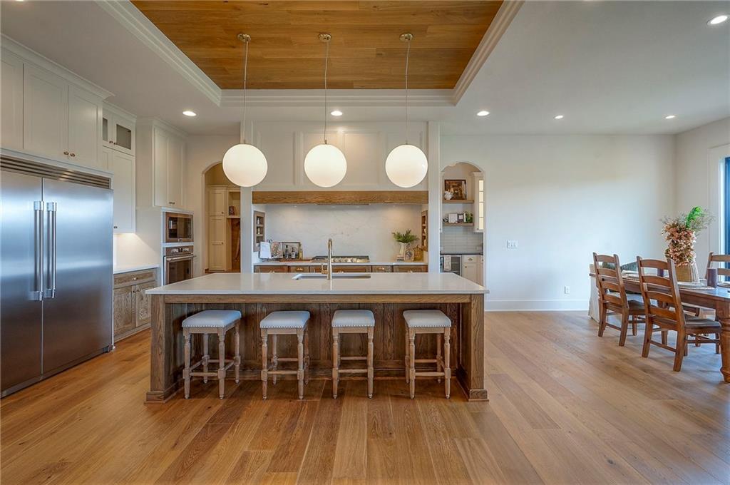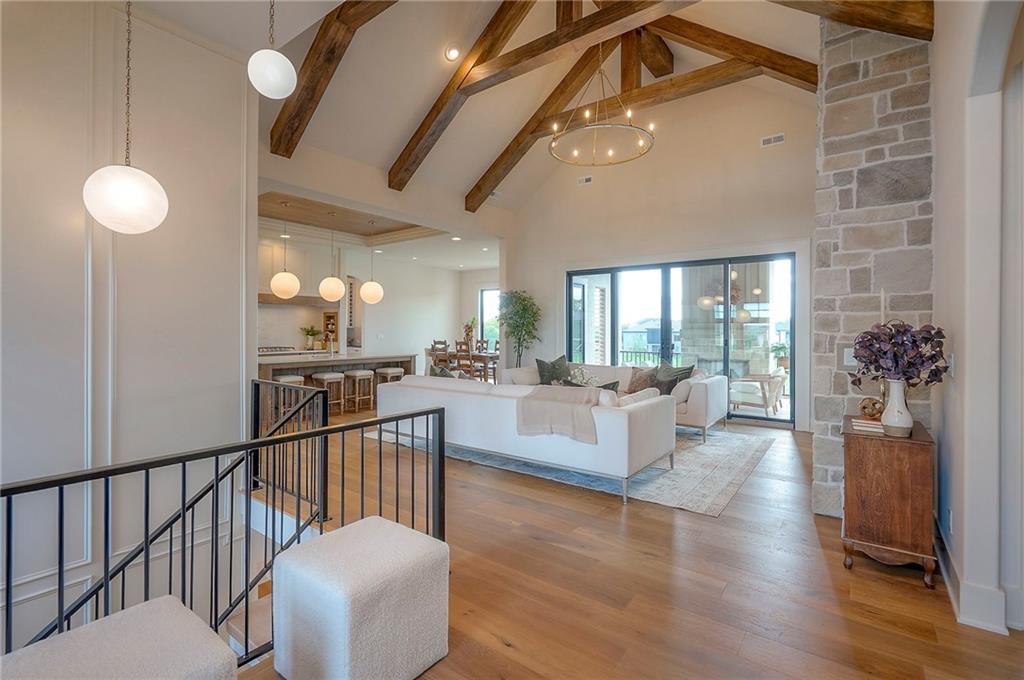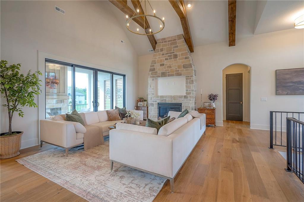 Welcome to the beautiful Silverstone floor plan by JW Thomas, a thoughtfully designed 3,372 SF custom home perfectly blending elegance, function, and comfort. Situated on a walkout lot overlooking peaceful greenspace, this 4-bedroom, 2 full and 2 half-bath home offers an incredible lifestyle in one of the most desirable communities - Lake Winnebago, MO. Step inside to discover a spacious, light-filled layout with designer finishes throughout. The gourmet kitchen is a dream for any home chef, featuring a prep kitchen with built-in mixer lift and storage, produce drawers, an oversized refrigerator, professional grade Frigidaire appliances with double ovens, and abundant custom white oak cabinetry. The open living area with gorgeous beams, flows seamlessly to a tiled back deck with fireplace, accessible through multiple sliding doors, creating a perfect space for entertaining or unwinding while enjoying the view. The primary suite is a true retreat, showcasing a massive walk-in closet with built-in storage and convenient pull-down racks. The luxurious master bath includes heated tile flooring, where every lighting detail has been thoughtfully designed. Downstairs, the finished lower level offers a built-in bar and unique nook ideal for game nights. The covered stamped patio below mirrors the serenity of the deck above, overlooking the greenspace. You will also find 2 additional generously sized bedrooms with walk-in closets, and a 3rd bedroom finished with fitness in mind. The 3-car garage with belt drive garage openers provides plenty of room, including a bay large enough for your boat, perfect for Lake Winnebago living. Enjoy all the community has to offer: a brand new resort-style pool, horse stables, restaurant, parks, walking trails, tennis and basketball courts, and year-round community events. This home combines thoughtful craftsmanship, luxury touches, and the unbeatable Lake Winnebago lifestyle. Don’t miss the chance to make it yours!