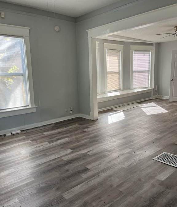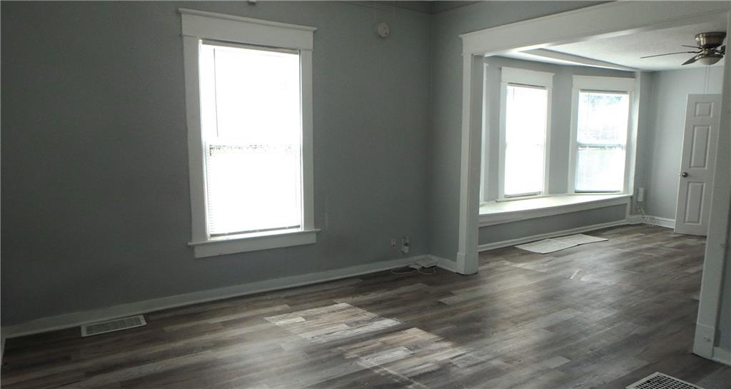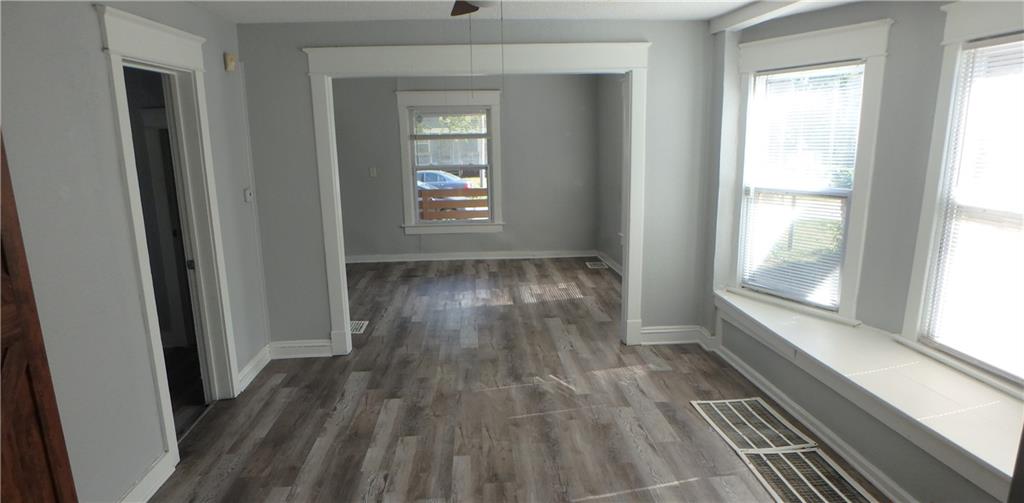 Sought after Knoche Park Annex. This four bedroom one and a half bath one and a half story bungalow has a full width covered front porch, and a full width covered rear porch. One card detached garage. Main floor laundry hook ups off kitchen. Lovely barn door between dining room and kitchen. All bedrooms are tiny but meet the criteria of entering from hallways and containing closets. House has been rehab and appears to be in relatively good shape.