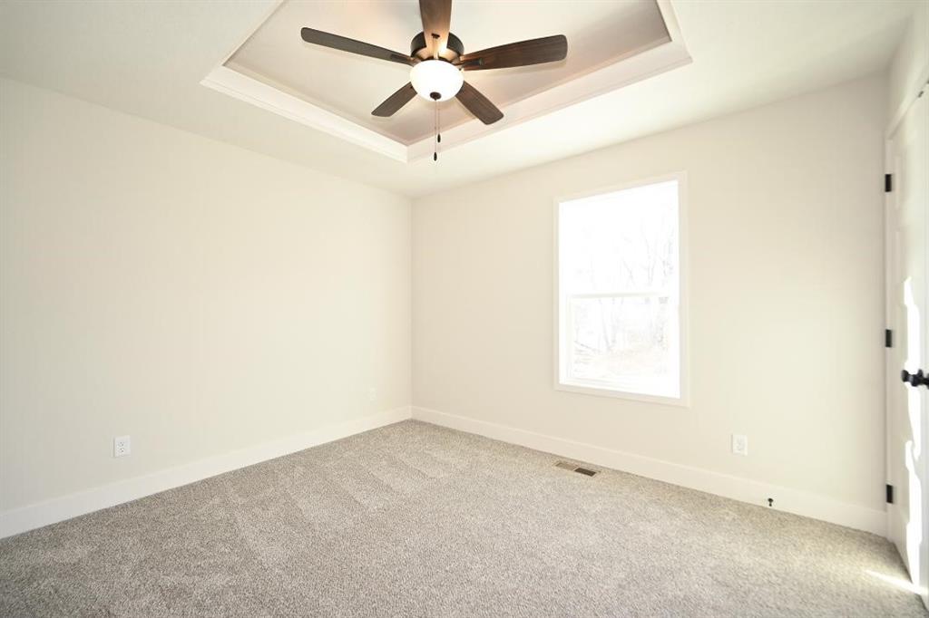 Stunning Custom Home with Modern Features and Inviting Spaces Welcome to your dream home! This exquisite property showcases an open floor plan, ideal for both entertaining and everyday living. The elegant kitchen boasts pristine white granite countertops, custom cabinets, and stainless steel appliances, all seamlessly flowing into the spacious living area centered around a beautiful fireplace. Step outside to discover a covered deck complete with a fan and light, perfect for enjoying serene views of the adjacent pasture. The rich feel of this home is accentuated by LVP throughout and vaulted ceilings enhancing the sense of space and light. The laundry room features stylish tile, while two generously-sized guest bedrooms offer plush carpeting, ceiling fans, and trey ceilings, creating a comfortable retreat for family and friends. The guest bath is tastefully designed, highlighting a tiled tub and a marble vanity that exudes luxury. Retreat to the master bedroom, a good-sized haven with carpet, a ceiling fan, and sophisticated trey ceilings. The walk-in master closet provides ample storage, while the en-suite master bath features elegant tile flooring, a double vanity with sleek black faucets, and a spacious tiled shower. The lower level invites you to enjoy a large fourth bedroom, complete with carpeting and a ceiling fan, alongside a substantial family room perfect for movie nights. The additional full bath boasts a tiled floor and a shower for convenience. Completing this remarkable home is an oversized three-car garage, providing plenty of space for vehicles and storage. The front of the house is adorned with beautiful stone, adding to the curb appeal with shutters to boost the look. Don’t miss the opportunity to make this luxurious yet inviting home your own!