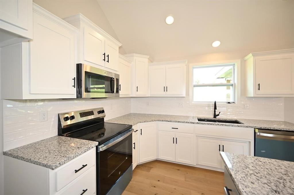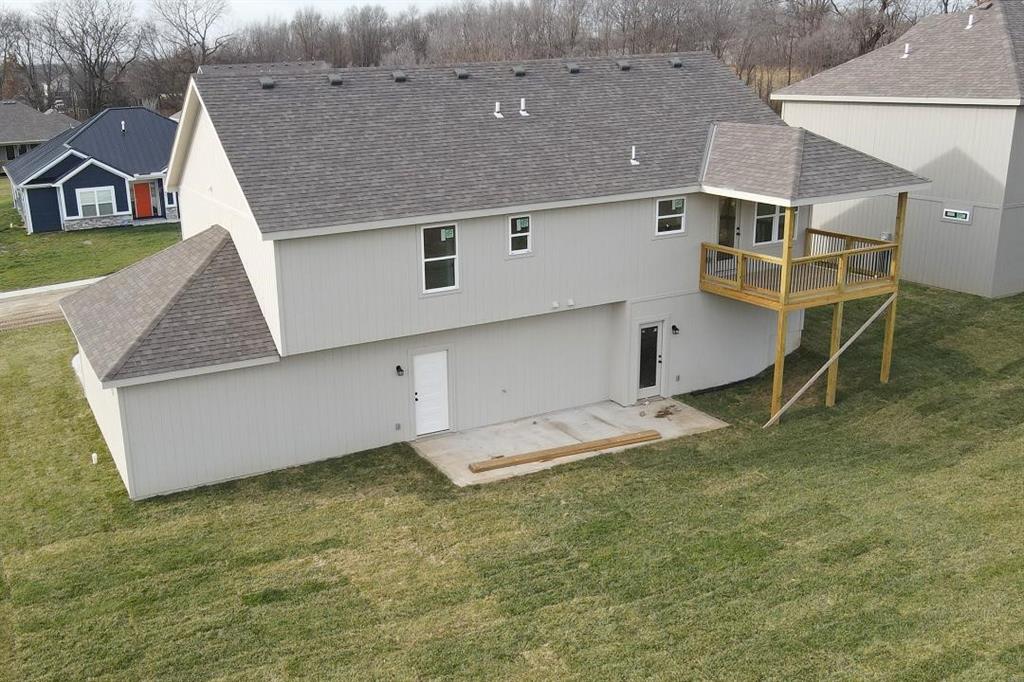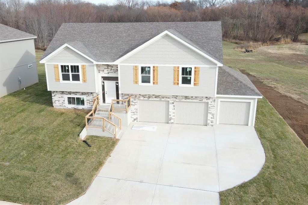 Stunning Custom Home with Modern Features and Inviting Spaces Welcome to your dream home! This exquisite property showcases an open floor plan, ideal for both entertaining and everyday living. The elegant kitchen boasts pristine white granite countertops, custom cabinets, and stainless steel appliances, all seamlessly flowing into the spacious living area centered around a beautiful fireplace. Step outside to discover a covered deck complete with a fan and light, perfect for enjoying serene views of the adjacent pasture. The rich feel of this home is accentuated by LVP throughout and vaulted ceilings enhancing the sense of space and light. The laundry room features stylish tile, while two generously-sized guest bedrooms offer plush carpeting, ceiling fans, and trey ceilings, creating a comfortable retreat for family and friends. The guest bath is tastefully designed, highlighting a tiled tub and a marble vanity that exudes luxury. Retreat to the master bedroom, a good-sized haven with carpet, a ceiling fan, and sophisticated trey ceilings. The walk-in master closet provides ample storage, while the en-suite master bath features elegant tile flooring, a double vanity with sleek black faucets, and a spacious tiled shower. The lower level invites you to enjoy a large fourth bedroom, complete with carpeting and a ceiling fan, alongside a substantial family room perfect for movie nights. The additional full bath boasts a tiled floor and a shower for convenience. Completing this remarkable home is an oversized three-car garage, providing plenty of space for vehicles and storage. The front of the house is adorned with beautiful stone, adding to the curb appeal with shutters to boost the look. Don’t miss the opportunity to make this luxurious yet inviting home your own! SIMULATED PHOTO'S NEW ONES COMING SOON - THE POND IS STOCKED FOR FISHING